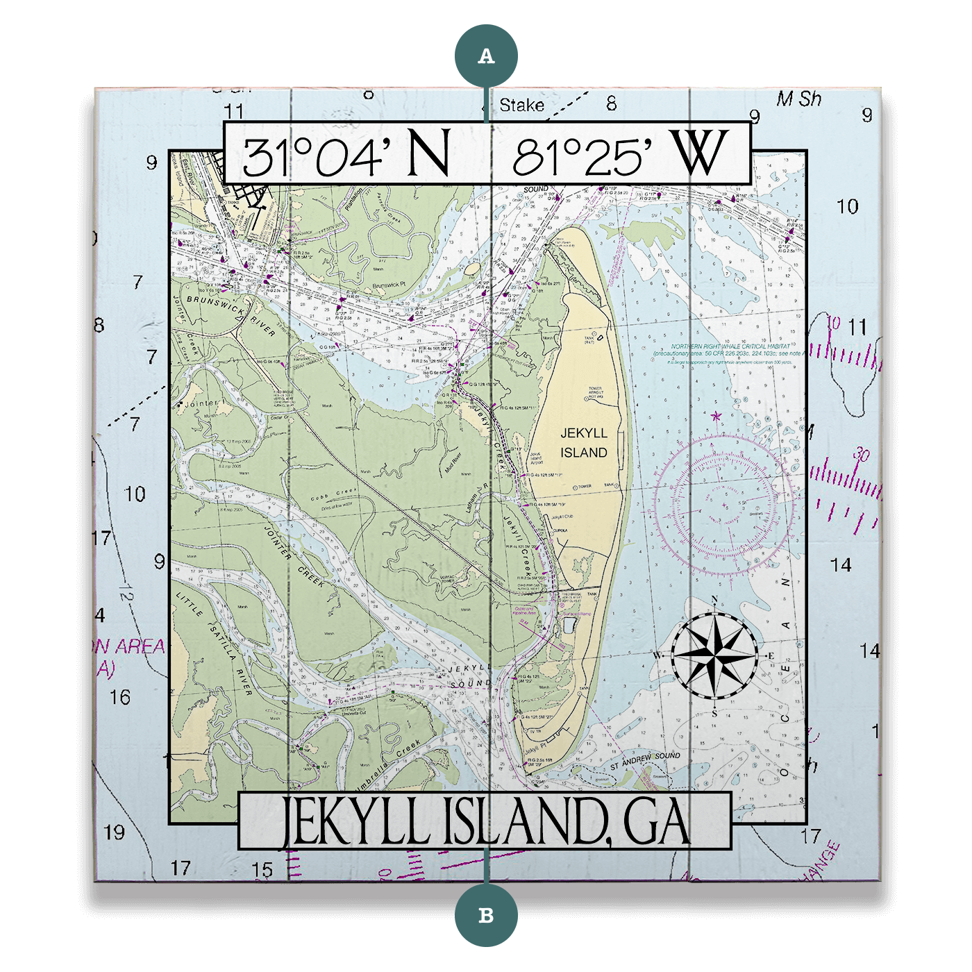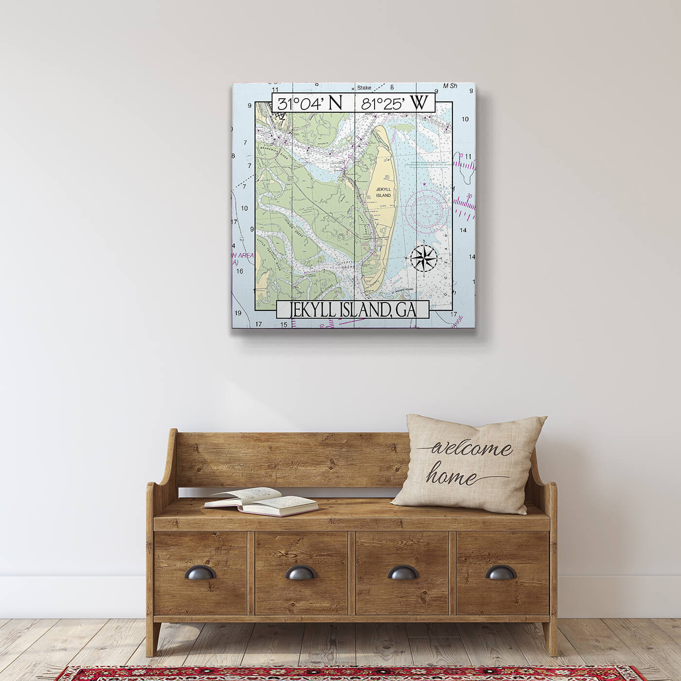 This nautical chart artwork of Jekyll Island, Georgia, features the island’s distinctive shape, navigable channels, and coastal surroundings. Part of Georgia’s Golden Isles, Jekyll Island is known for its historic district, unspoiled beaches, and protected marshlands that support a wealth of wildlife. Whether you’re drawn to its maritime legacy or natural beauty, this piece offers a timeless tribute to one of the South’s most treasured coastal retreats with customizable name and coordinates.
