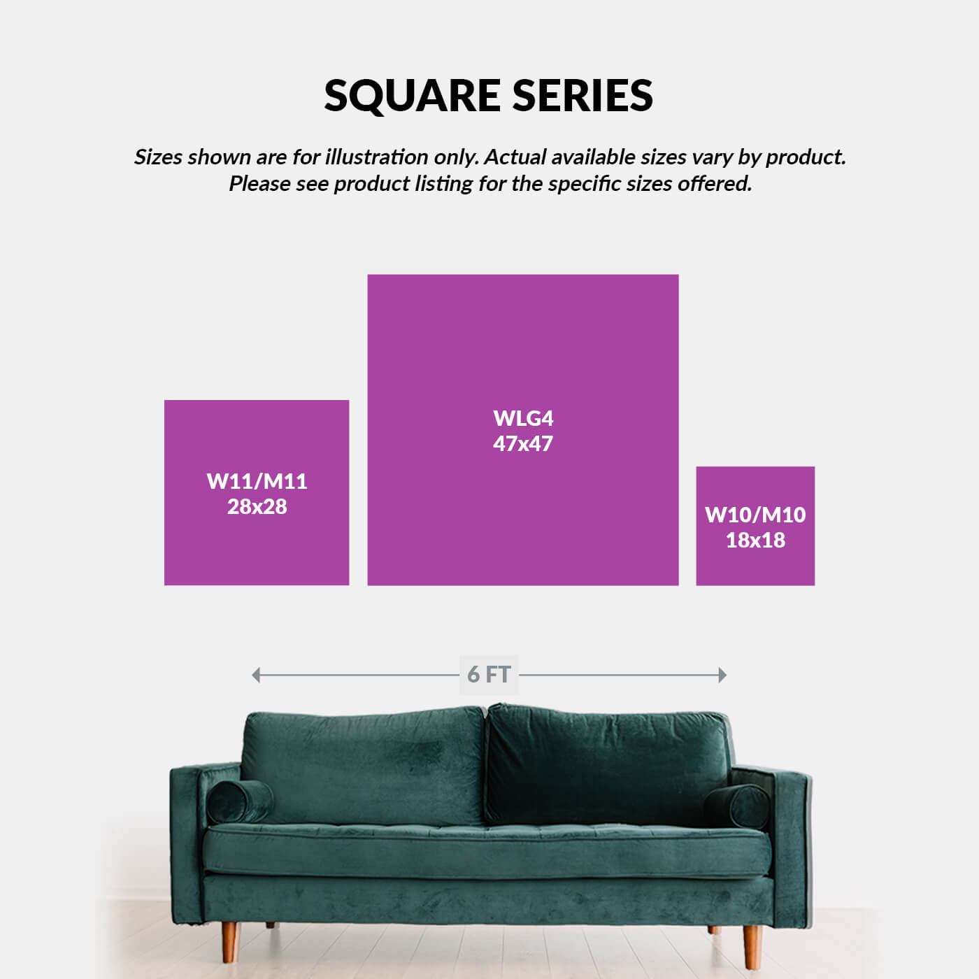 Available in varied sizes from 10.5-inch by 10.5-inch to an extra-large 47-inch by 47-inch wooden version, allowing for a perfect fit in a variety of settings.