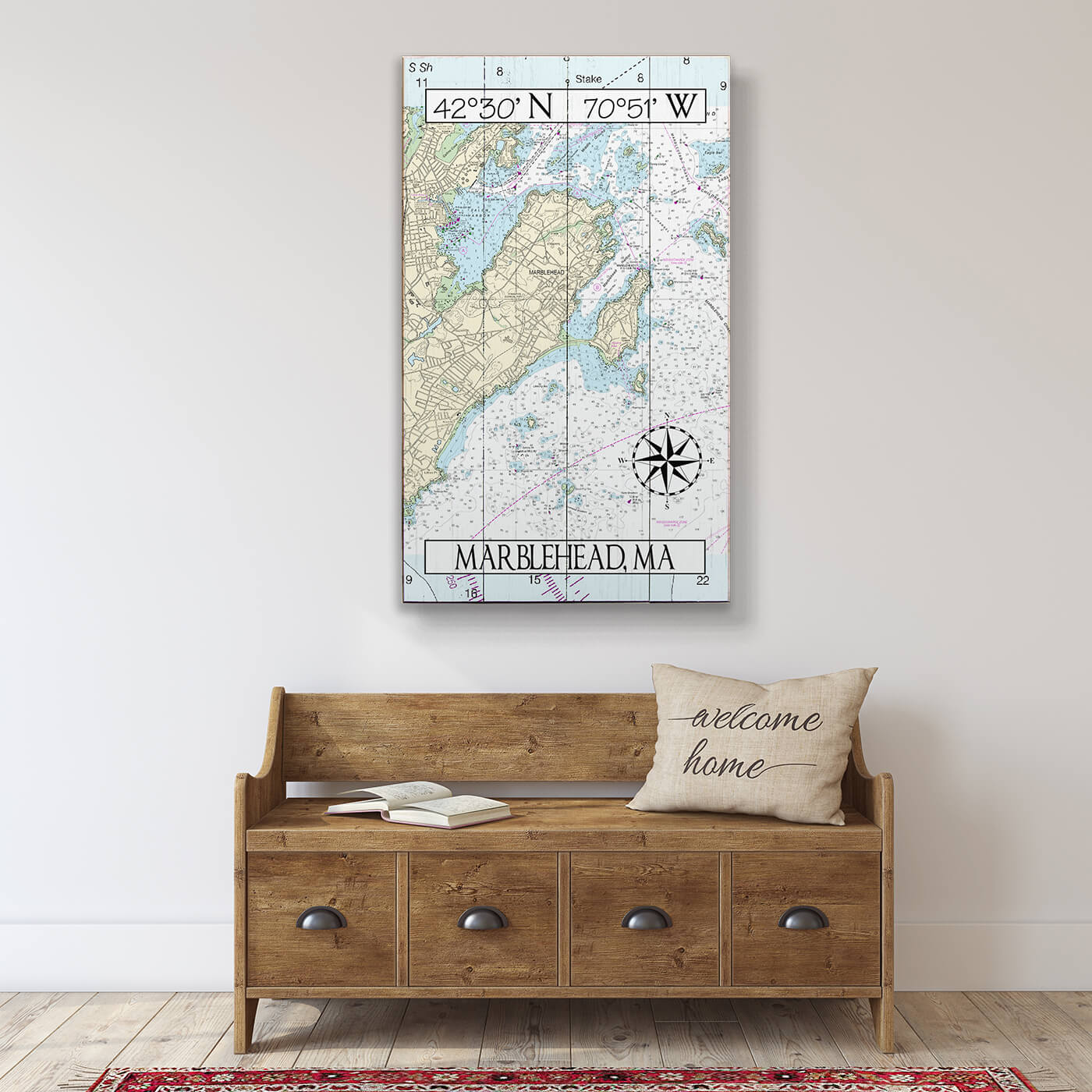 This nautical chart of Marblehead, Massachusetts, beautifully showcases the town’s rugged coastline, detailed maritime markings, and precise coordinates (42°30' N, 70°51' W). Known as the birthplace of the American Navy, Marblehead boasts a rich maritime heritage, charming historic streets, and a vibrant sailing culture. The town’s picturesque harbor is a haven for boaters, while its rocky shores and ocean views captivate visitors year-round. With customizable coordinates and name options, this artwork is a perfect way to celebrate Marblehead’s seafaring legacy and coastal charm in any home, office, or nautical-themed space.