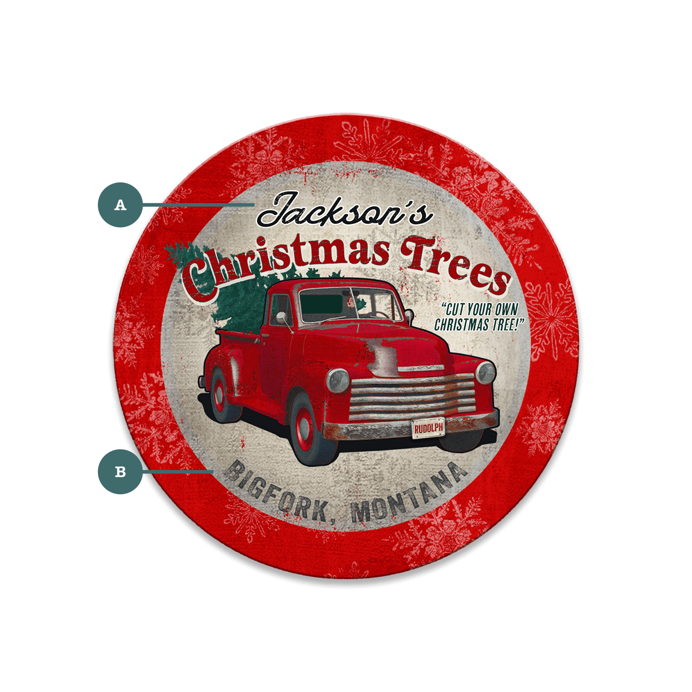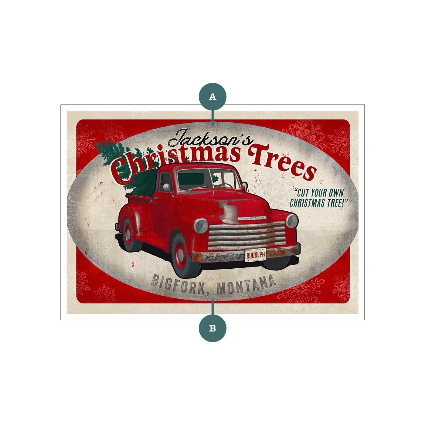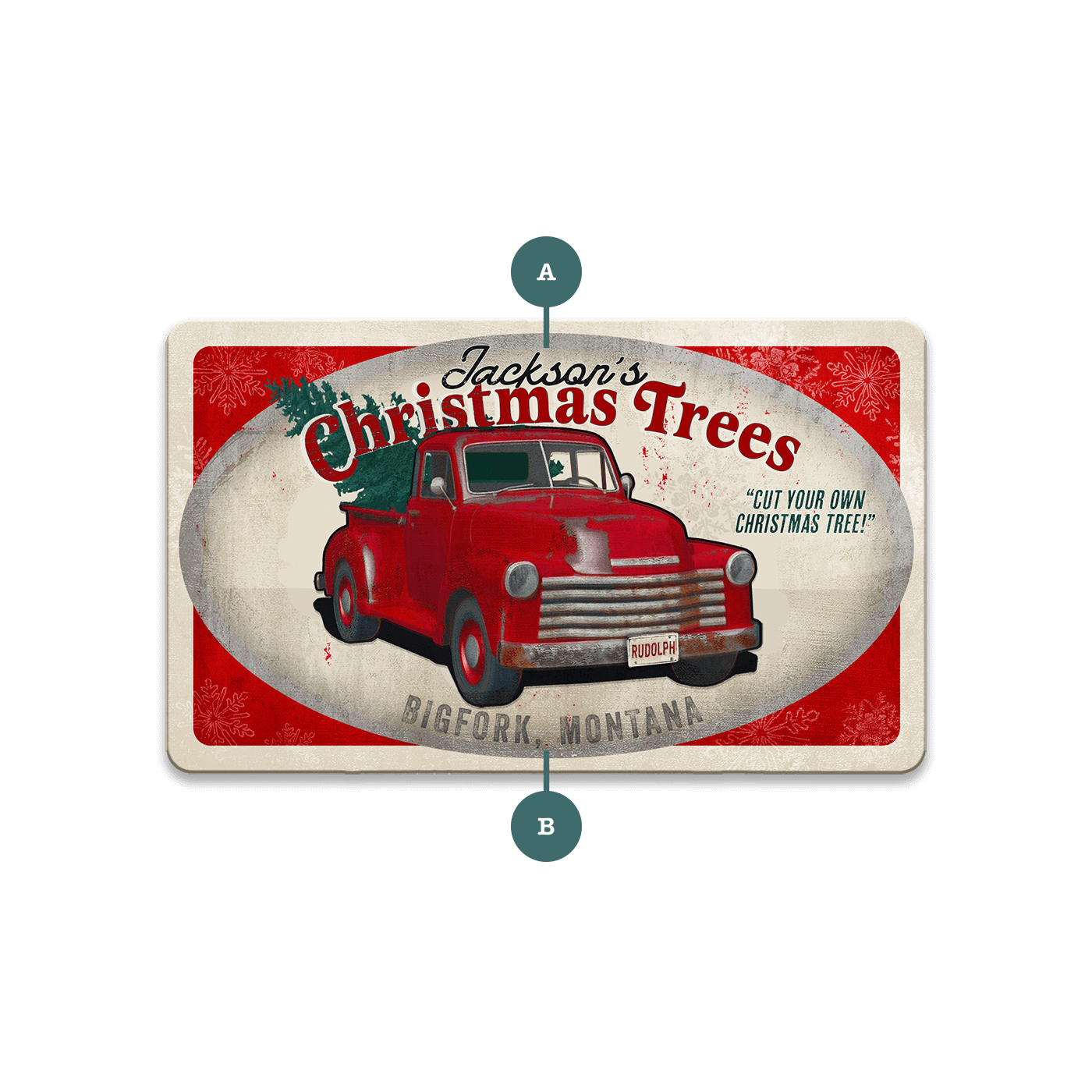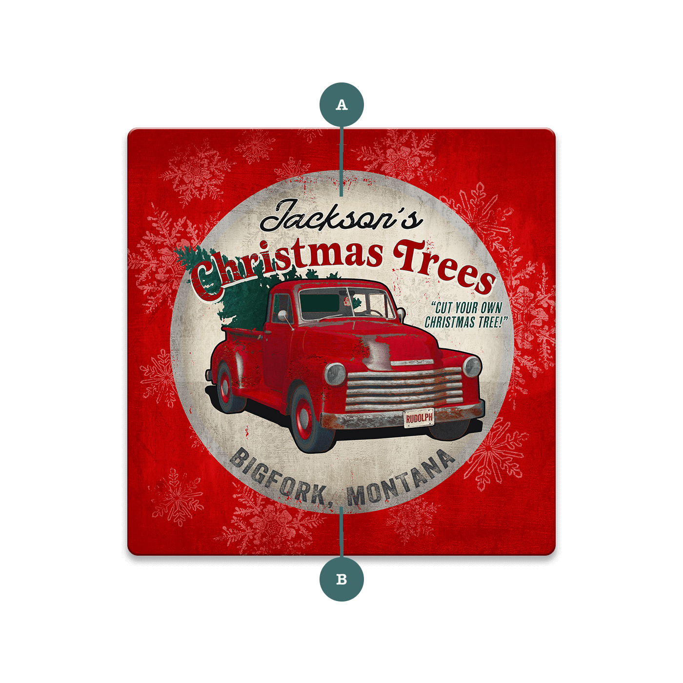 This festive artwork captures the nostalgic charm of a vintage red truck carrying a freshly cut Christmas tree. With its rustic, weathered design and cheerful holiday theme, this piece is perfect for adding a touch of classic Americana to your holiday décor. Featuring the playful tagline "Cut Your Own Christmas Tree!", this sign evokes the joy of family traditions and holiday outings. Ideal for those who love retro holiday decorations, this artwork brings warmth and nostalgia to any space, making it a great gift or seasonal display.