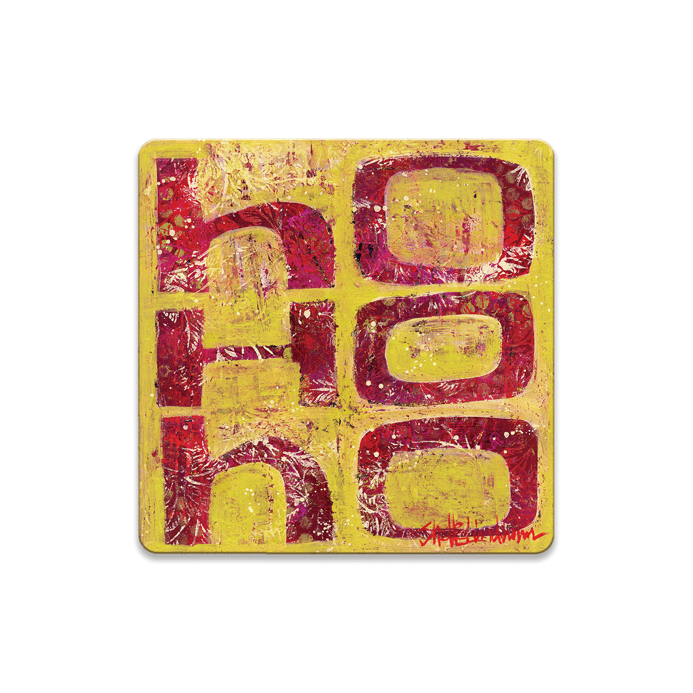 Add a bold and festive "Ho Ho Ho" to your holiday decor with this vibrant artwork brought to life with a dynamic mix of red and yellow tones. The textured layers and pine needle details add depth and energy, creating a sense of playful movement and celebration. This piece exudes joy and creativity, inviting viewers to embrace the cheer and infectious warmth of the holiday season.