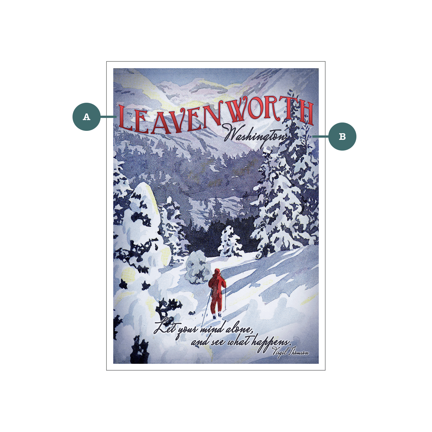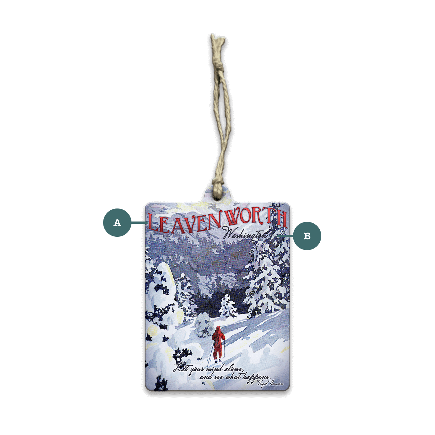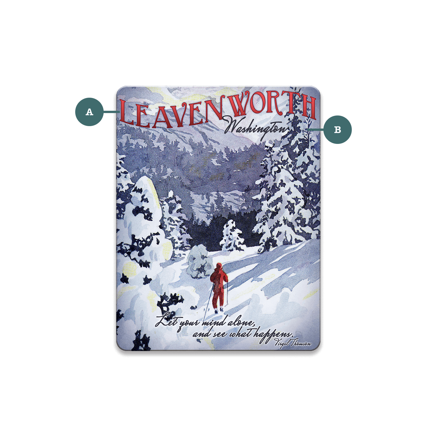 This stunning winter-themed artwork captures the serene beauty of a snow-covered mountain landscape. Featuring a skier in red gliding through a peaceful, snow-laden forest, the piece evokes a sense of adventure and tranquility. The soft, muted colors combined with the detailed illustration create a nostalgic, vintage feel, perfect for lovers of outdoor recreation and winter sports. The artwork’s weathered, retro design adds a timeless charm, making it ideal for decorating spaces with a rustic or alpine theme.