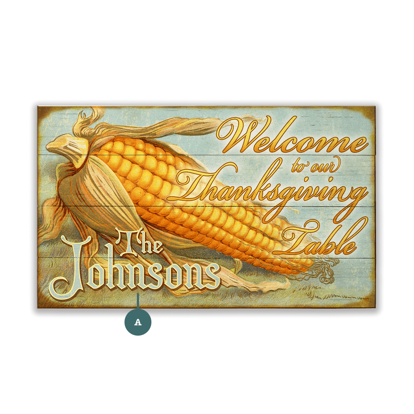Celebrate the season of gratitude with this beautifully illustrated ear of corn, welcoming Thanksgiving guests into nostalgic charm and farmhouse bounty. The warm, golden tones and soft blue background evoke the comfort of gathering around the table with loved ones, while the flowing script adds a touch of timeless elegance. Ideal for kitchens, dining areas, or holiday displays, it’s a heartfelt nod to tradition and togetherness.