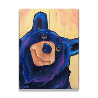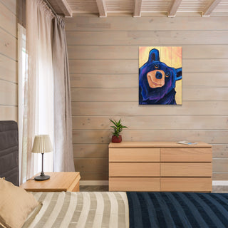 Spark conversation with this bold artwork featuring a curious black bear gazing with a warm and inquisitive expression, set against a soft, glowing yellow background. The dramatic mix of deep purples, blues, and golden tones brings depth and character, making this piece a standout addition to any room. Perfect for nature-inspired, modern, or eclectic decor, this spirited bear radiates charisma and charm.