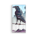 This artwork presents a striking raven perched on a branch, its sleek black feathers glistening with hints of blue and purple. Against a light sky, the raven's piercing gaze and sharp beak stand out, highlighting its keen intelligence and enigmatic aura. The background features soft, muted colors, allowing the raven's form to dominate the composition. The painting captures the bird's mysterious nature, embodying the spirit of the wild.