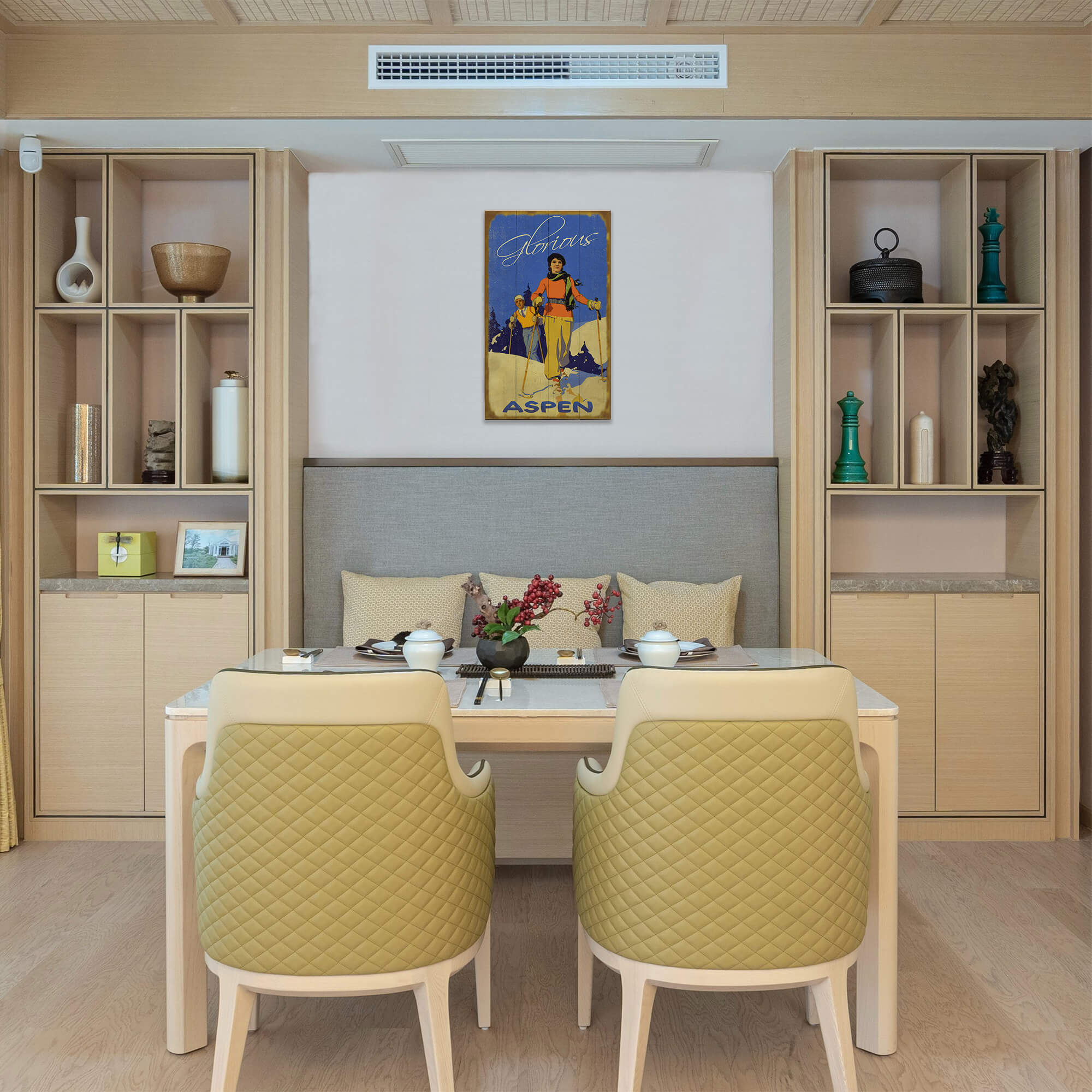 Bring a timeless celebration of winter’s splendor and the joy of being in nature to any space with this radiant artwork. Two skiers in classic, colorful attire spend their winter day exploring beautiful snowy landscapes. The strong lines and rich hues emphasize the contrast between the sparkling snow and vibrant blue sky, capturing the invigorating energy of alpine adventures. Perfect for ski enthusiasts or lovers of vintage art, this piece encapsulates the feeling of freedom and wonder in the great outdoors.
