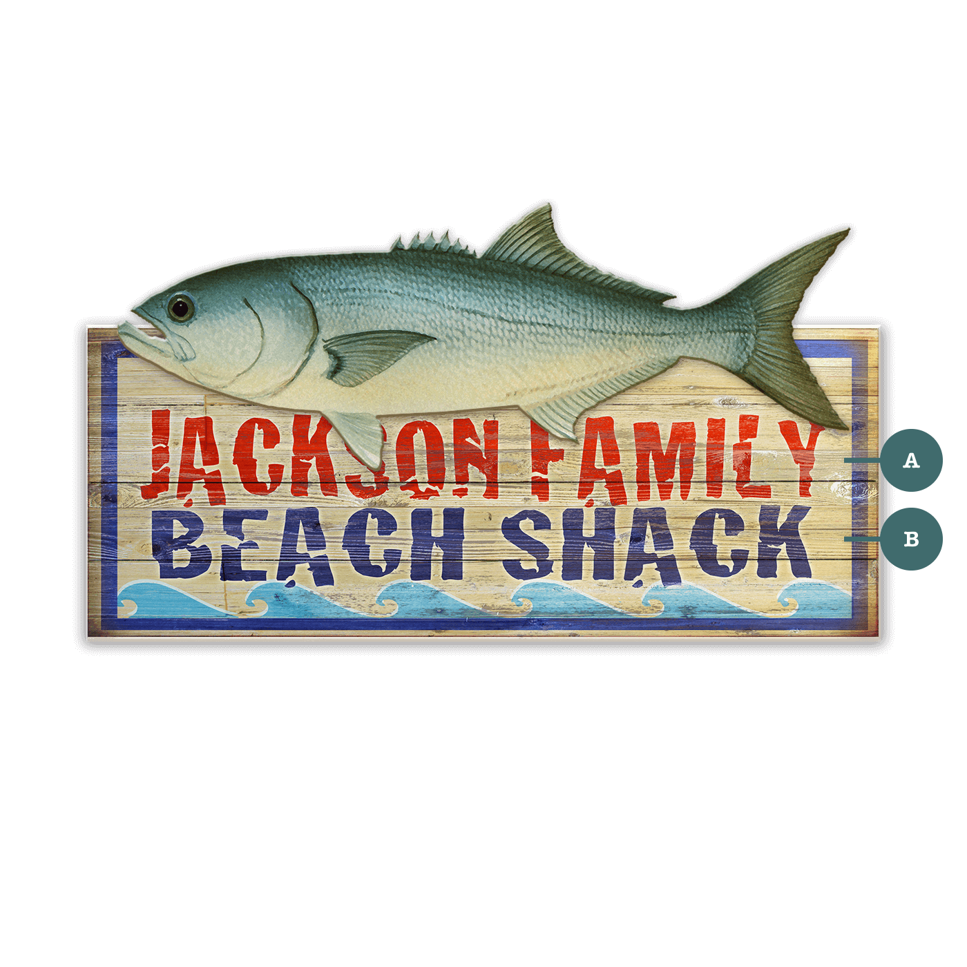 Bring coastal charm to your space with this personalized beach shack sign, perfect for ocean lovers and fishing enthusiasts. Featuring a striking three-dimensional fish, bold lettering, and a weathered wood background, this piece captures the relaxed spirit of life by the shore. With 13 saltwater fish options to choose from, you can customize it to showcase your favorite catch. Whether displayed in a beach house, seaside retreat, or coastal bar, this sign adds a unique, nautical touch that celebrates the thrill of the open water.