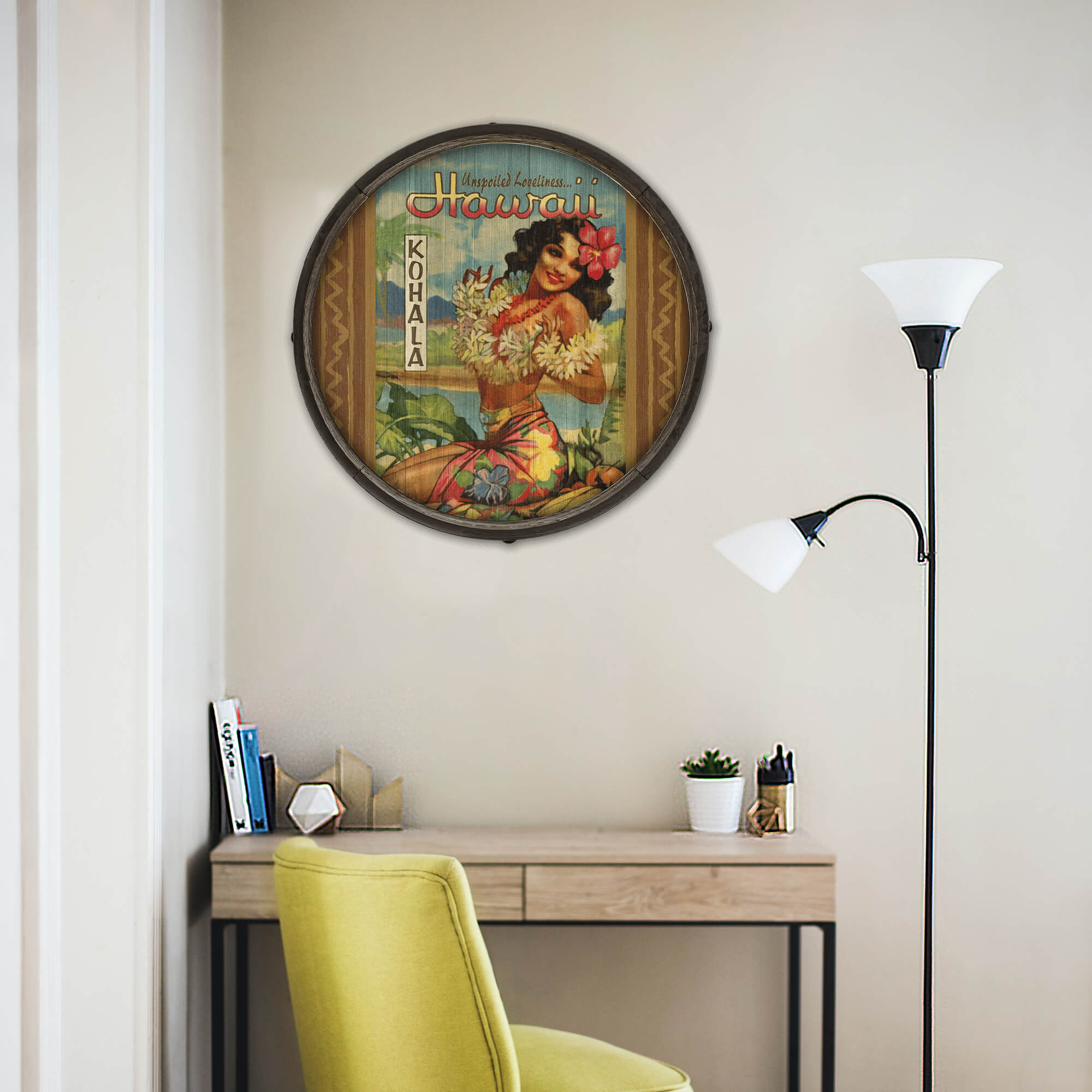 This vintage-inspired artwork captures the enchanting beauty of Hawaii, featuring a Hawaiian woman adorned with traditional floral leis and a vibrant tropical skirt. The artwork emphasizes Hawaii’s "Unspoiled Loveliness" and highlights the Kohala region, evoking a nostalgic, island paradise vibe. Ideal for decor in Hawaiian-themed spaces, it brings a warm, retro feel that celebrates the rich culture and natural allure of Hawaii.