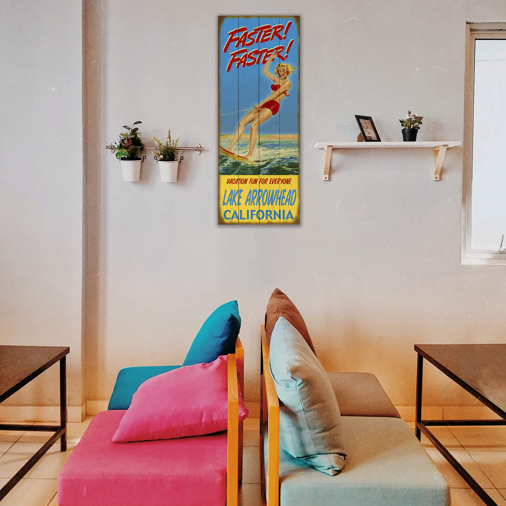 Loyd, who had been dabbling in cartooning and surfing, was encouraged to take an art class taught by Eric Titlebaum, a cartoonist of Playboy Magazine notoriety. With time to tinker during the desolate winters, Laura began asking Loyd to create merchandise for their shop. Recognizing the untapped potential of the skiing crowd, they started designing and producing unique wood and metal signs inspired by vintage ephemera.