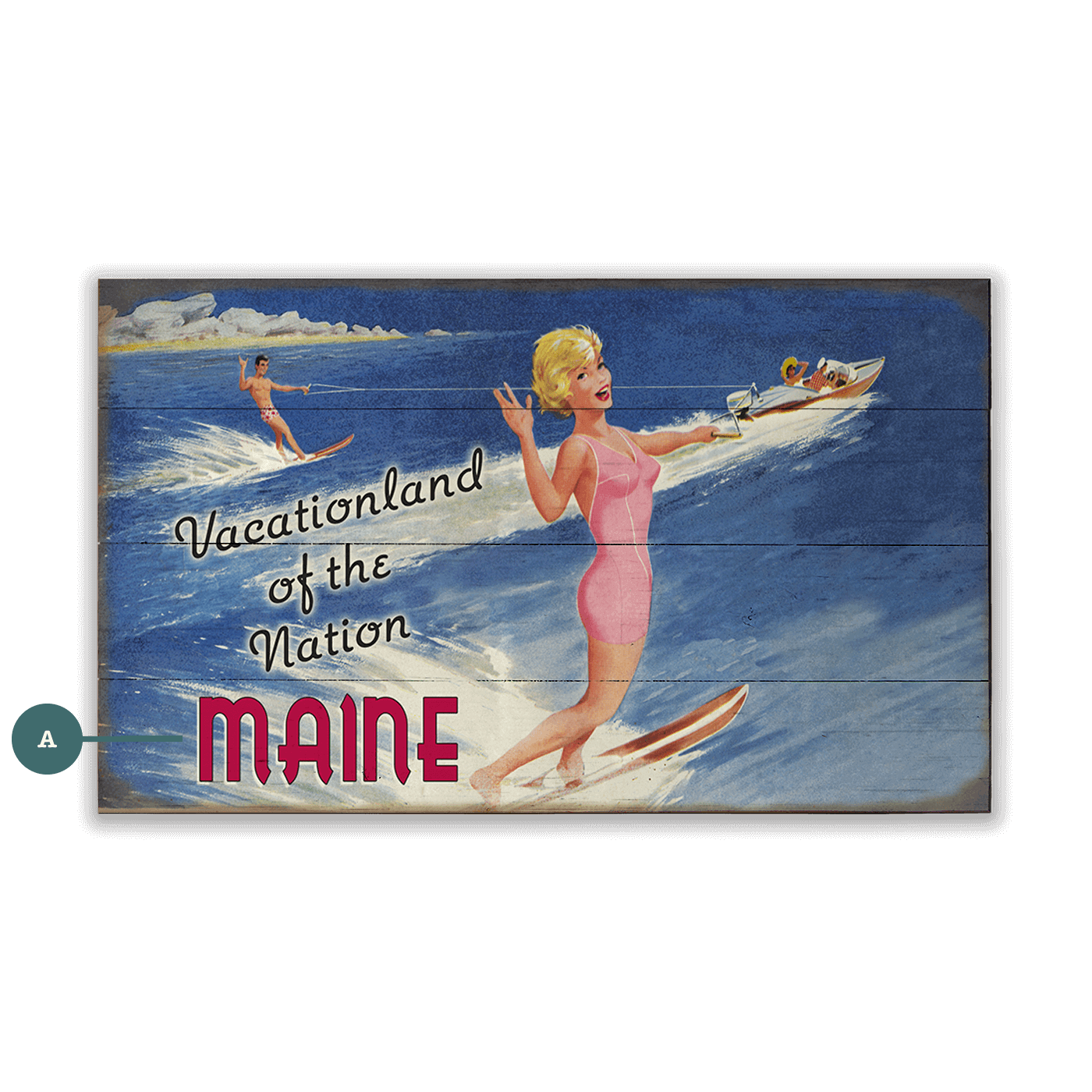 Loyd, who had been dabbling in cartooning and surfing, was encouraged to take an art class taught by Eric Titlebaum, a cartoonist of Playboy Magazine notoriety. With time to tinker during the desolate winters, Laura began asking Loyd to create merchandise for their shop. Recognizing the untapped potential of the skiing crowd, they started designing and producing unique wood and metal signs inspired by vintage ephemera.