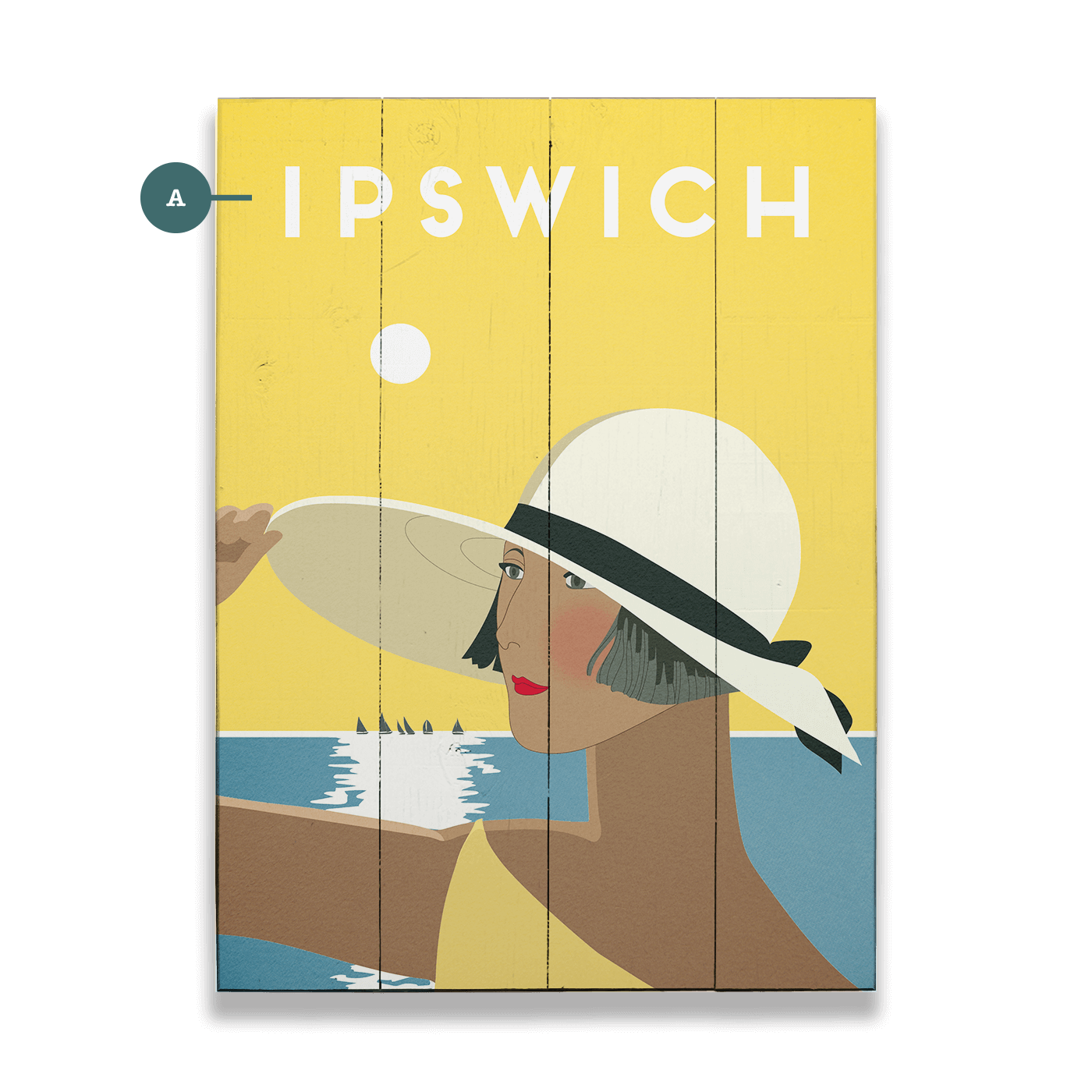 Bathed in golden light, this artwork captures a moment of timeless seaside elegance. A poised figure gazes across the shimmering water, her wide-brimmed sunhat softly shading her as the sun lingers overhead. The calm sea stretches into the horizon, dotted with distant sails that hint at adventure or an afternoon regatta. With its crisp lines and minimal palette, the piece evokes the glamour of early travel posters while inviting you to slow down, savor the view, and let the breeze carry your thoughts. Whether you're recalling summers past or dreaming of the next escape, it's a portrait of coastal serenity that never fades.