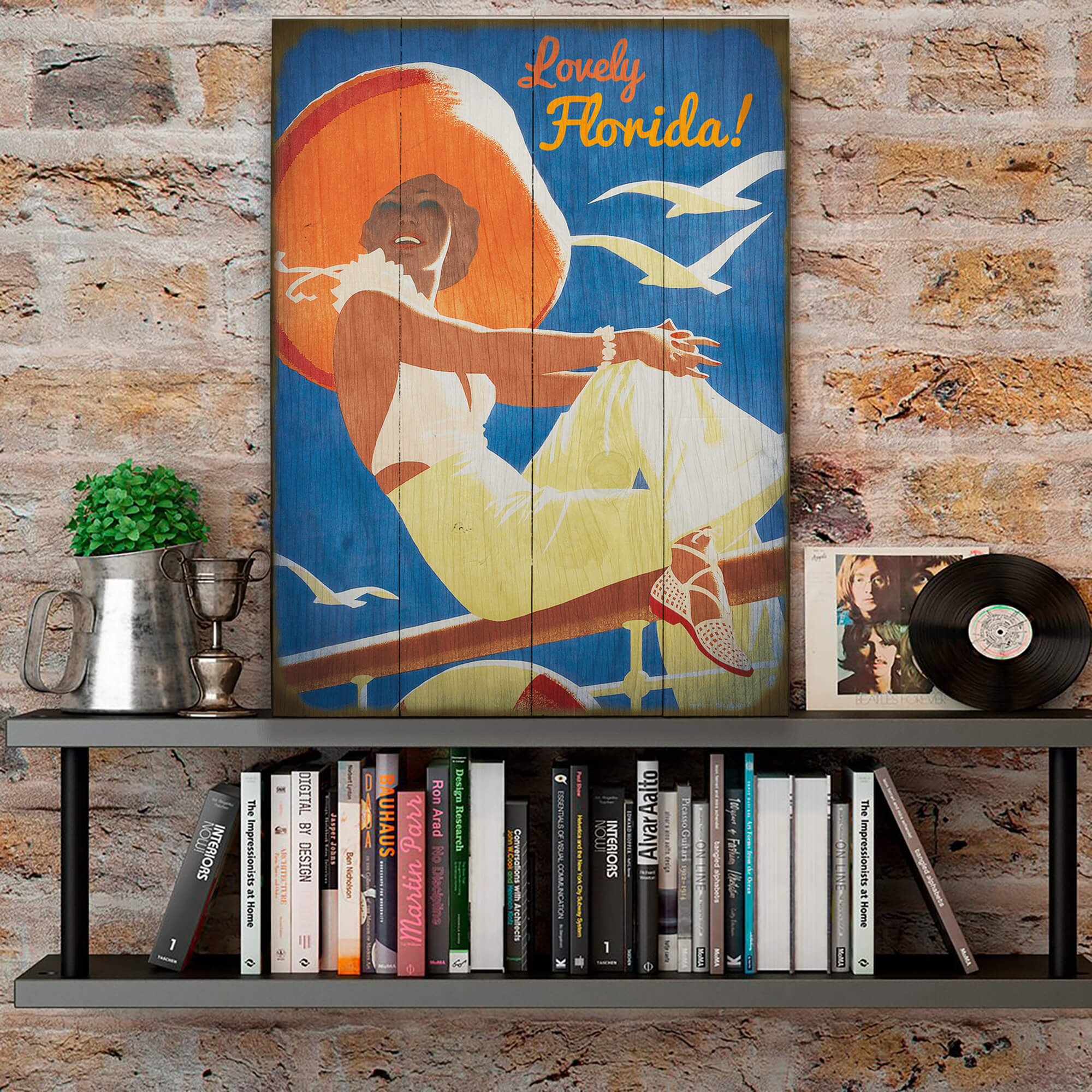 Bring the warmth and joy of a sunny getaway to your space with this vibrant "Lovely Day on Deck" sign. Featuring a cheerful woman in a bright hat, basking in the sunlight, this vintage-inspired artwork captures the essence of carefree days and relaxation. The rich colors and nostalgic design make it an eye-catching addition to any decor, perfect for homes, vacation rentals, or businesses looking to create a welcoming and cheerful atmosphere.
