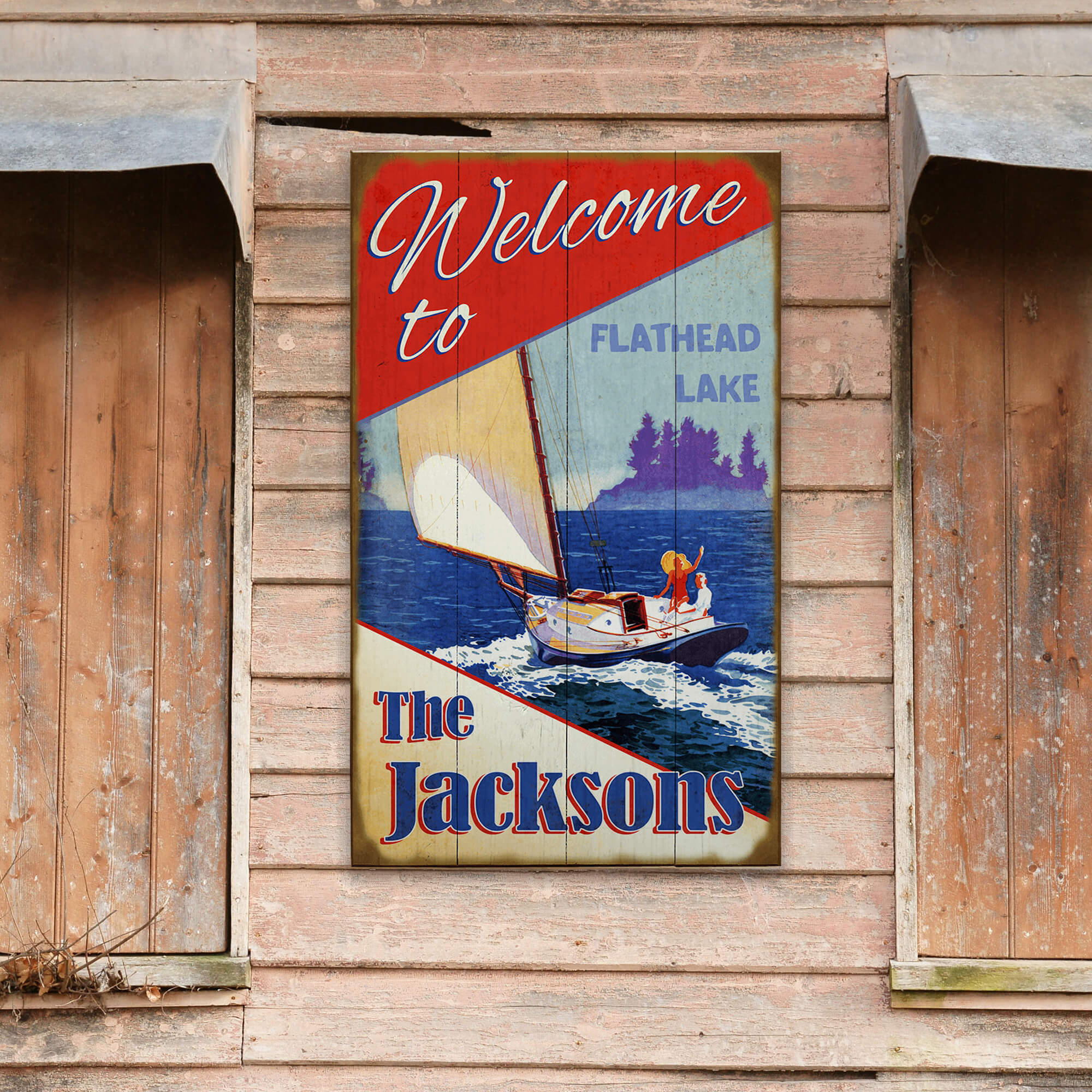 Welcome guests with a touch of nautical charm through this vibrant vintage-style artwork. Featuring a serene scene of a sailboat gliding across the water with a joyful sailor, this piece captures the essence of waterfront relaxation and adventure. The bold colors and welcoming design make it a perfect addition to any entryway or living space, creating a warm and inviting atmosphere.