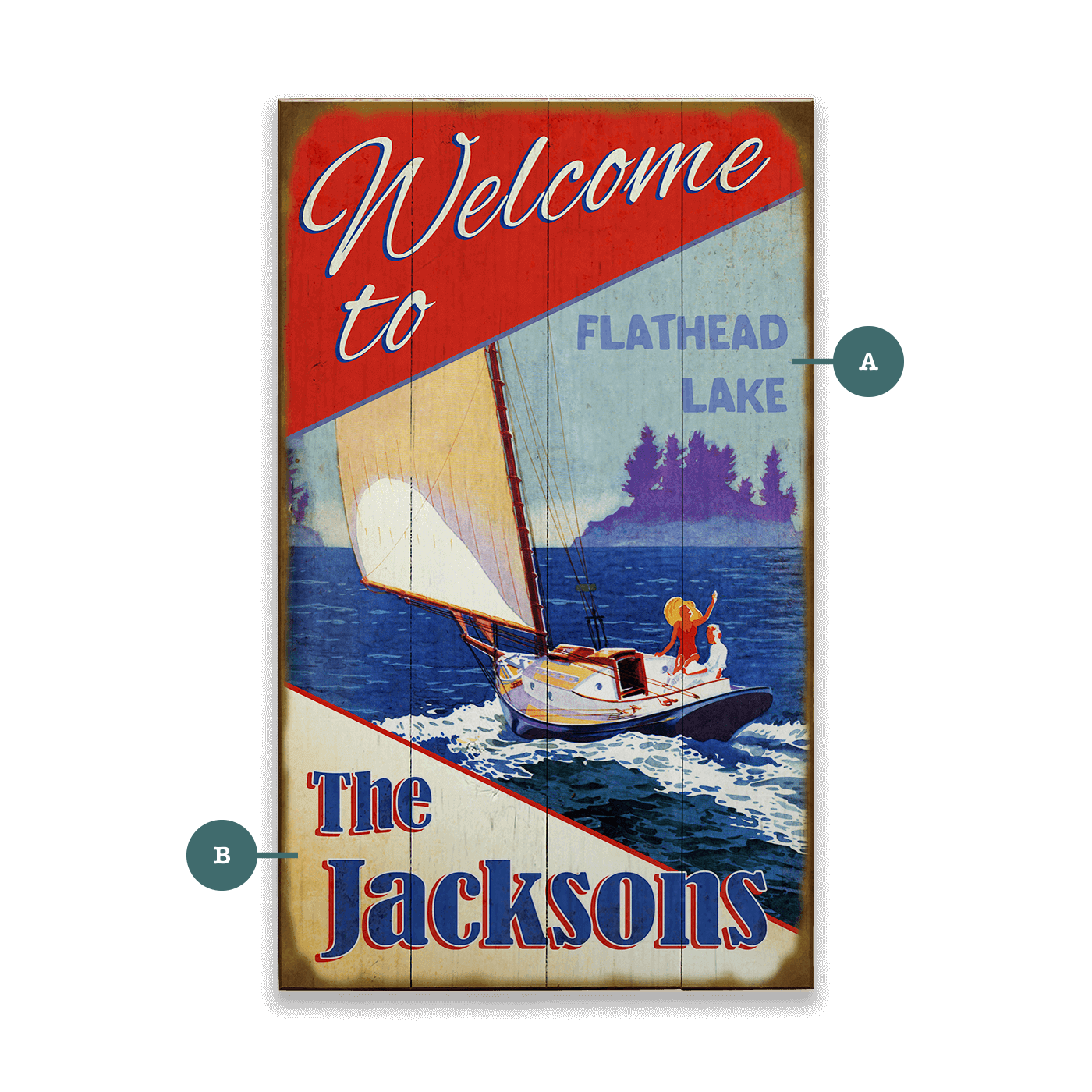 Enjoy complimentary personalization for this piece, meticulously handcrafted by our graphic design team. Specify your desired text for points A and B. To ensure perfection in your custom piece, please verify your text carefully. Missing personalization information will revert to our default design as shown. To remove all text from a field, type "Remove" in that field.