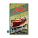 Experience the thrill of classic lake adventures with this beautifully crafted artwork. Featuring a vibrant vintage-style illustration of a sleek wooden speedboat cutting through the water, this piece captures the excitement and charm of a bygone era. The bold typography and rich, nostalgic colors evoke the feel of retro travel advertisements, making it a perfect addition to any lake house, bar, or nautical-themed space. Framed in a rustic barrel-end design, this sign brings warmth, character, and a touch of timeless adventure to your decor.