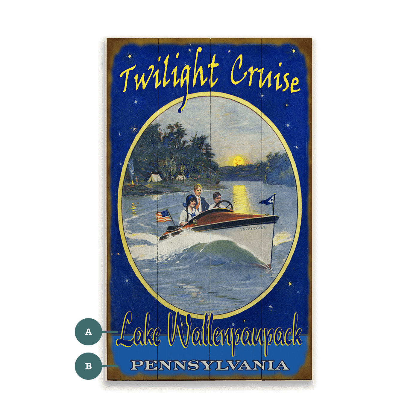 Enjoy complimentary personalization for this piece, meticulously handcrafted by our graphic design team. Specify your desired text for points A and B. To ensure perfection in your custom piece, please verify your text carefully. Missing personalization information will revert to our default design as shown. To remove all text from a field, type "Remove" in that field.