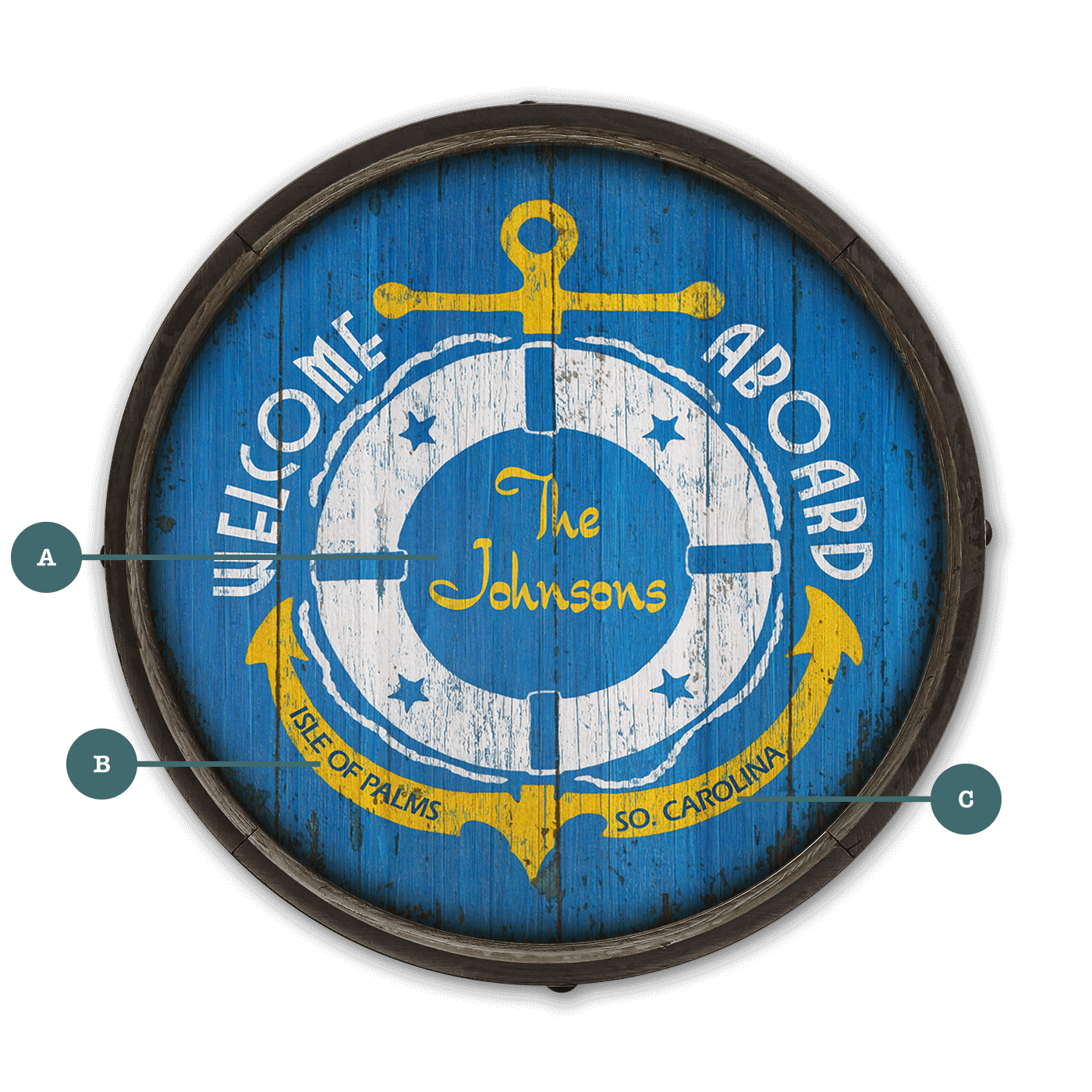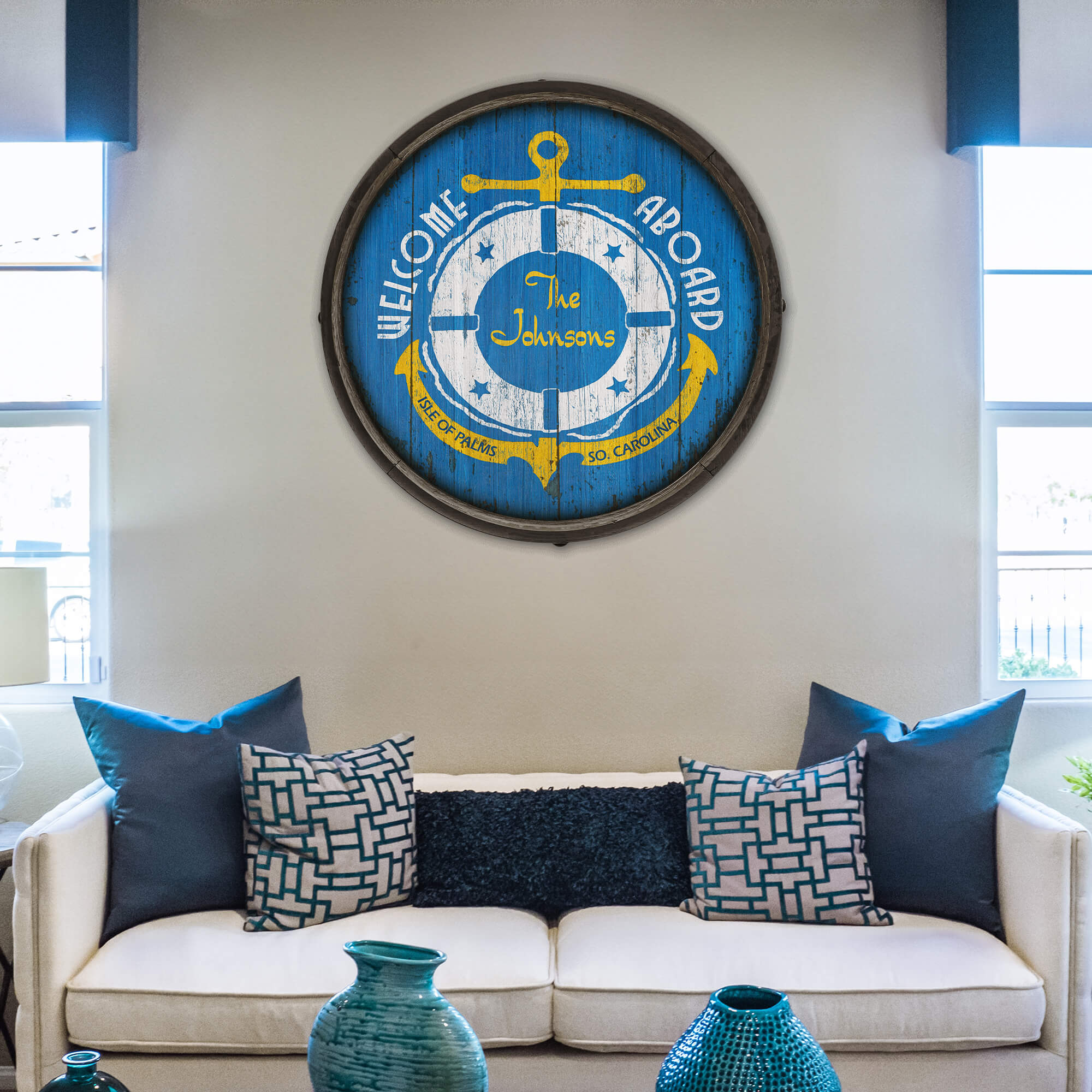 Welcome guests with our personalized nautical-themed wood sign! This unique piece features a bold, eye-catching design with a classic anchor and lifebuoy motif, inviting warmth and a touch of maritime charm into your home. Customized with your family name, it makes a perfect addition to any entrance, deck, or beach house. Celebrate your love for the sea and create an inviting atmosphere with this beautifully crafted sign that’s sure to impress and make everyone feel right at home.