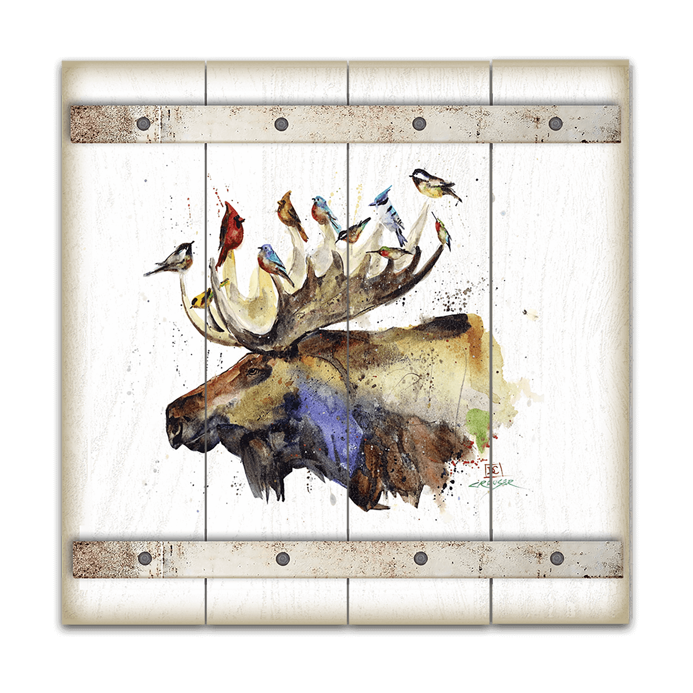 Celebrate the splendor of wildlife with this enchanting watercolor painting, featuring a majestic moose adorned with a colorful array of birds perched on its antlers. The artwork beautifully blends the rustic charm of the moose with the vibrant energy of the birds, creating a whimsical and harmonious scene. Ideal for both contemporary and rustic decor, this painting will captivate and charm anyone who views it, adding a touch of nature’s playful spirit to your home.