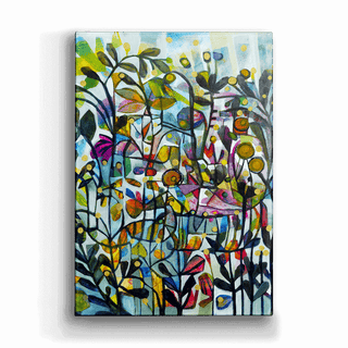 "Flamingo" by Esté MacLeod captures the delicate balance between a structured natural world and the boundless flow of imagination. In this enchanting garden scene, whimsical plant forms intertwine with vibrant colors and intricate patterns, a testament to Esté's rich background in textile and ceramic design. This piece is a visual poem, inviting the viewer into a serene yet playful world where the flora and fauna are in a harmonious dance, making "FLAMINGO" a splendid addition to any collection that seeks to blend the wonders of nature with the creativity of the human spirit.