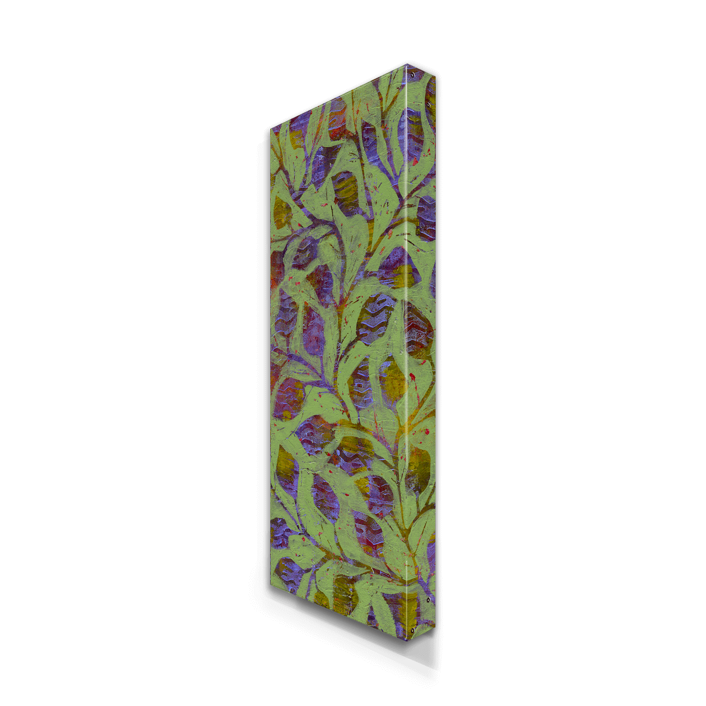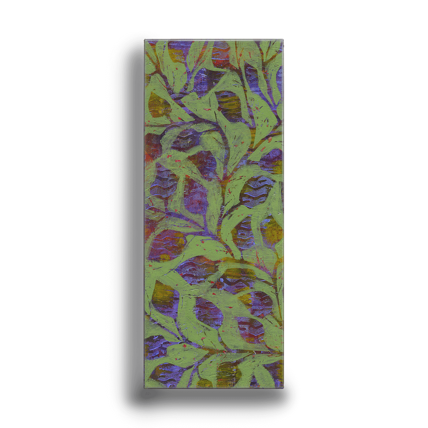 This elegant artwork showcases a mesmerizing interplay of deep lavender leaves on a background of rich green. The intricate layering and textured patterns create a sense of depth and vitality, evoking the serene beauty of nature in contemporary form. Perfect for adding a touch of sophistication and tranquility to any space, this piece brings a harmonious balance of color and design.