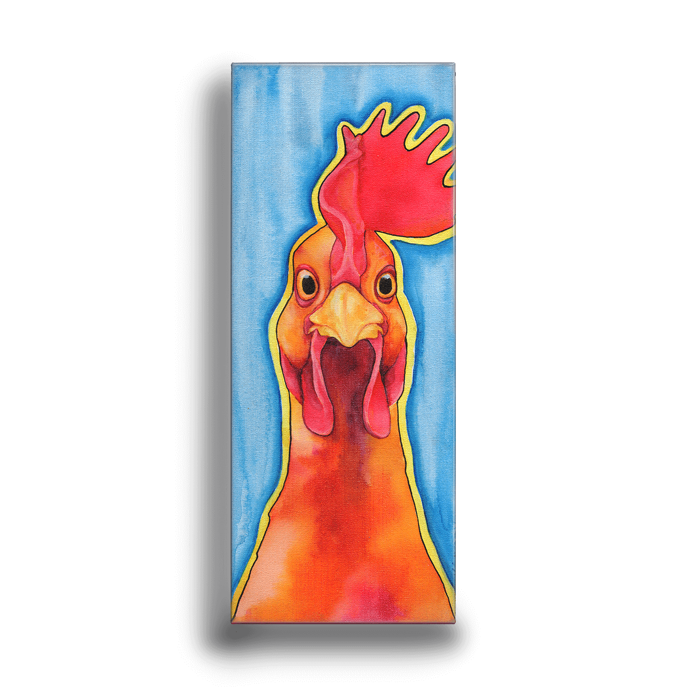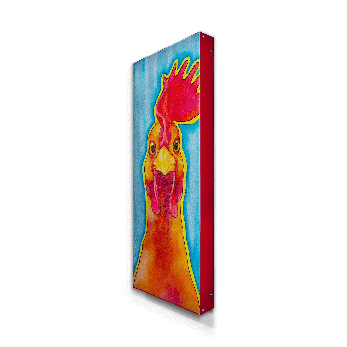 Celebrate the charm of rural life with this lively and whimsical artwork featuring a vibrant chicken against a sky-blue backdrop. The chicken’s bold red comb and wide-eyed expression exude personality, creating a quirky and cheerful vibe. Perfect for adding a splash of color to your kitchen, farmhouse decor, or any room in need of a playful touch, this piece is sure to enliven your space.