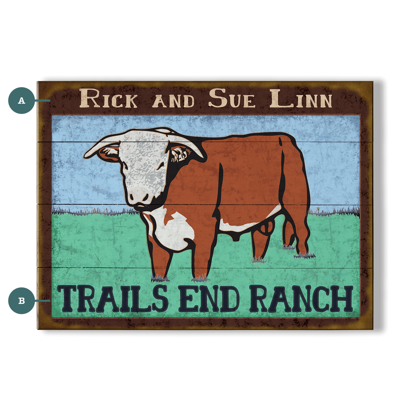 With a bold, rustic charm, this piece showcases a striking depiction of a Hereford cow standing against a serene countryside backdrop. The simple, graphic-style illustration enhances its vintage appeal, while the weathered finish adds a sense of authenticity, making it feel like a well-loved ranch sign. The earthy tones and classic Western typography reinforce its connection to hardworking farm life and cattle ranching traditions. Perfect for barns, ranch houses, or any space that embraces the rugged beauty of rural living.