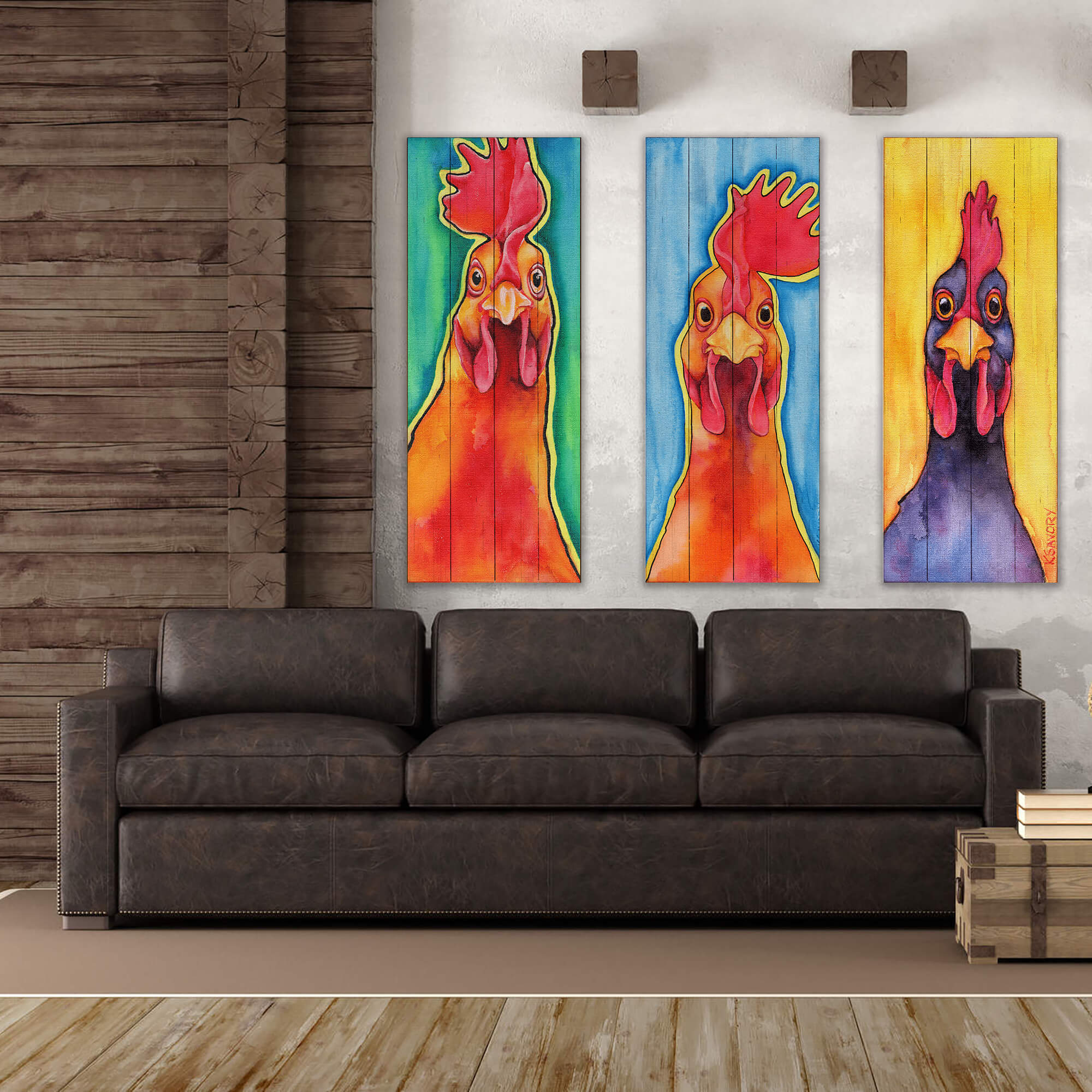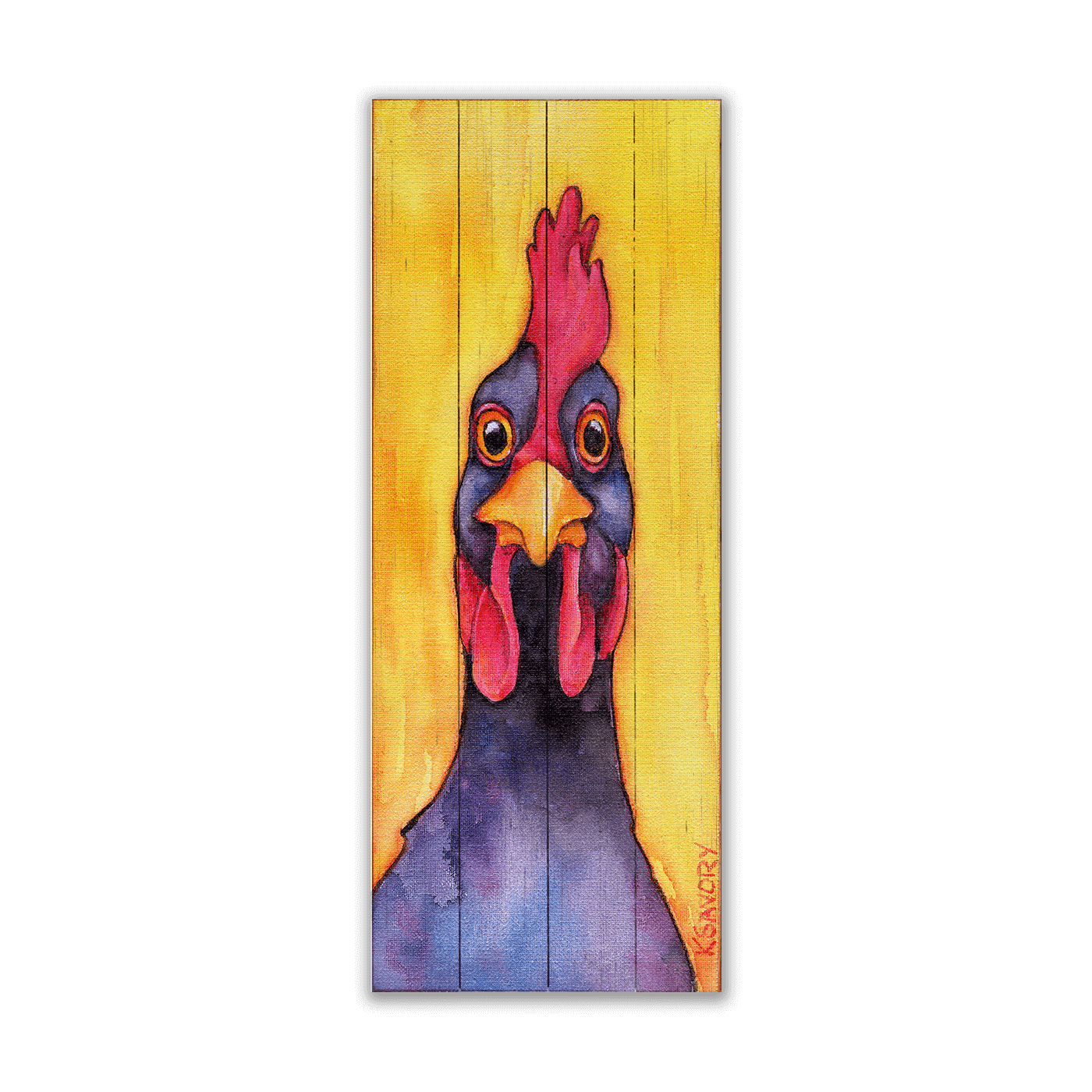 Add a touch of humor and vibrancy to your space with this eye-catching artwork featuring a plucky and colorful hen. Against a bold golden background, the hen’s expressive gaze and striking red comb draw you in, radiating personality and drama. Perfect for farmhouse decor or anyone who loves quirky, animal-inspired art, this piece is guaranteed to spark conversations and brighten any room.