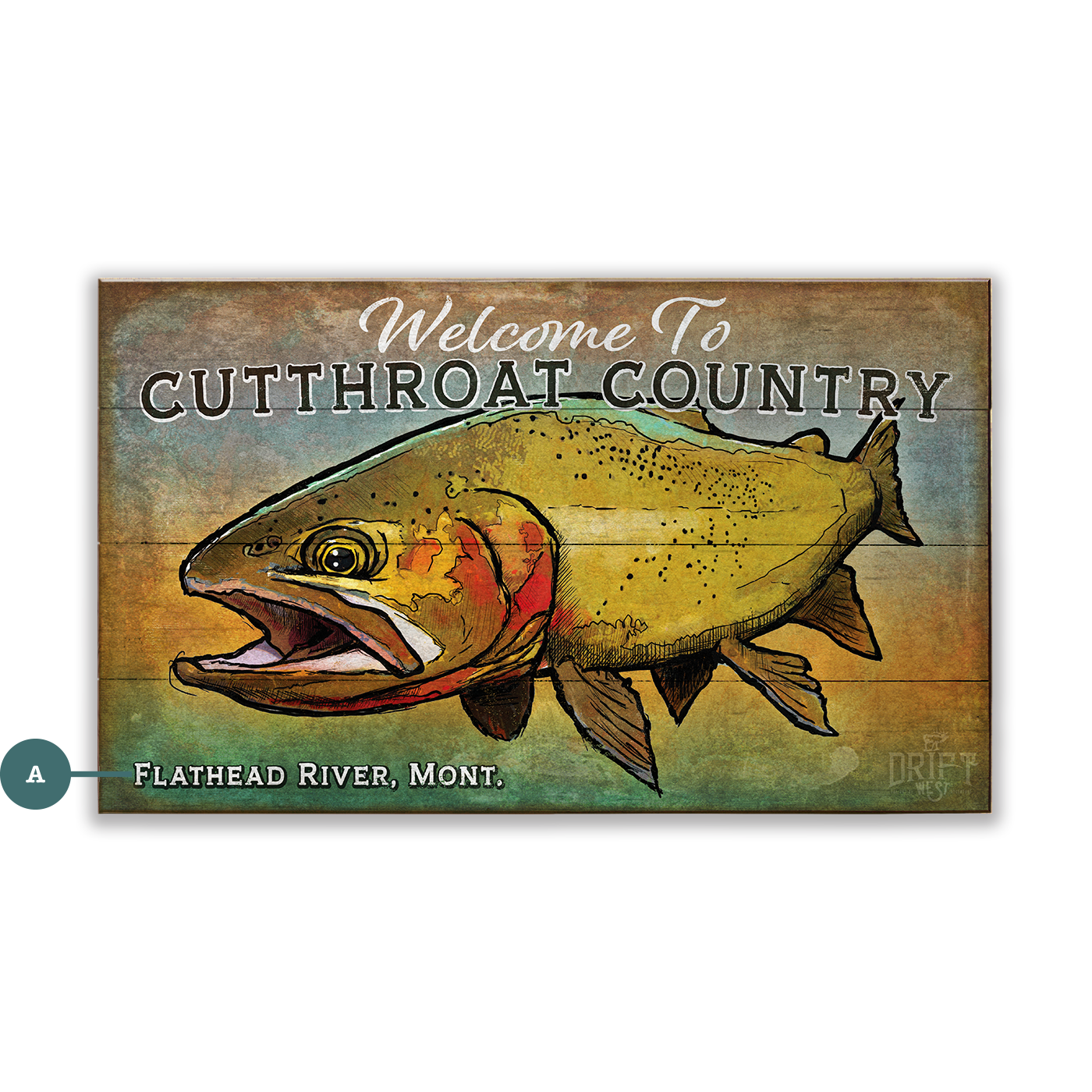 Celebrate the wild spirit of freshwater adventure with this vibrant artwork featuring a boldly illustrated golden cutthroat trout. Rich in earthy hues and dynamic textures, the piece captures the energy of a fish known for its fight and beauty. Perfect for anglers and nature lovers alike, this design brings the essence of river life to any space with striking character and rustic charm.