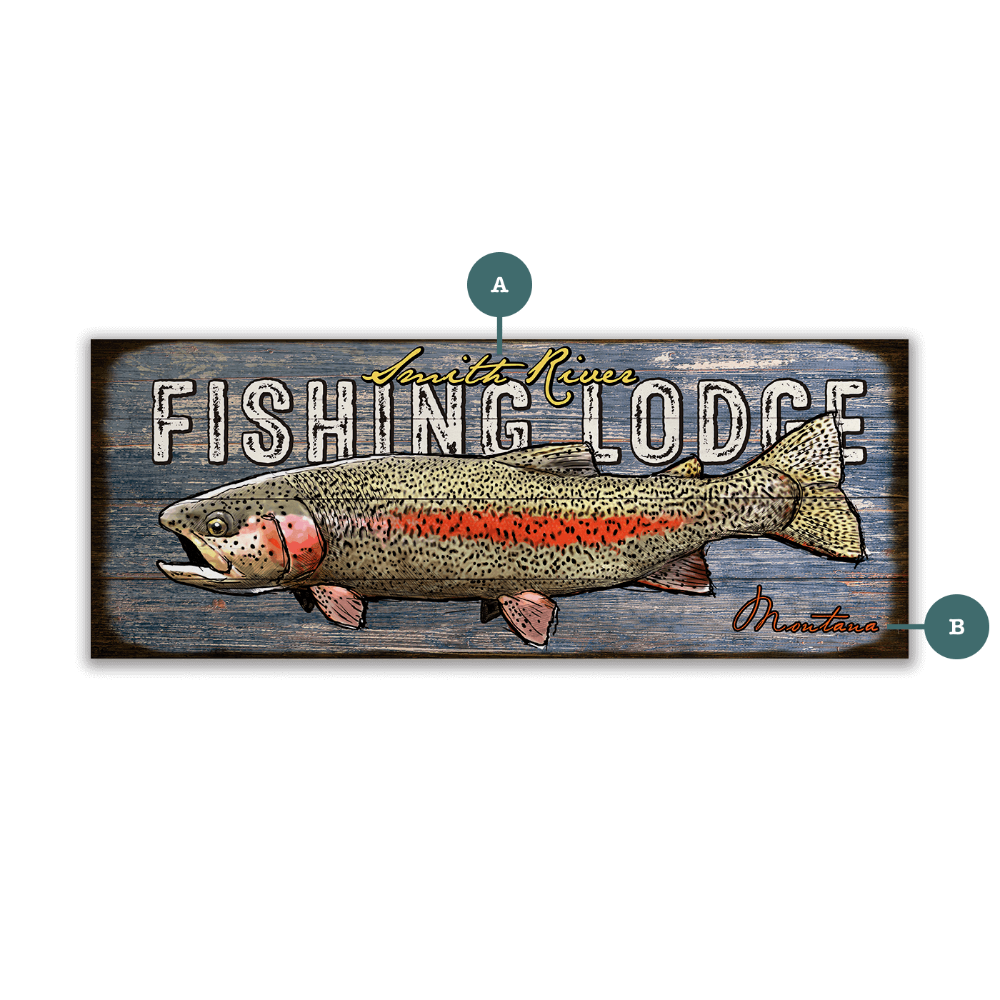 Bring the thrill of the catch into your space with this striking artwork, perfect for anglers and nature enthusiasts alike. This piece features a detailed illustration of a rainbow trout, complete with vibrant markings and a lifelike pose. Set against a rustic background, the bold lettering enhances its appeal, making it an ideal decor choice for any fishing lodge, home, or office. It captures the essence of the fishing lifestyle, celebrating both the sport and the natural beauty of the aquatic world.