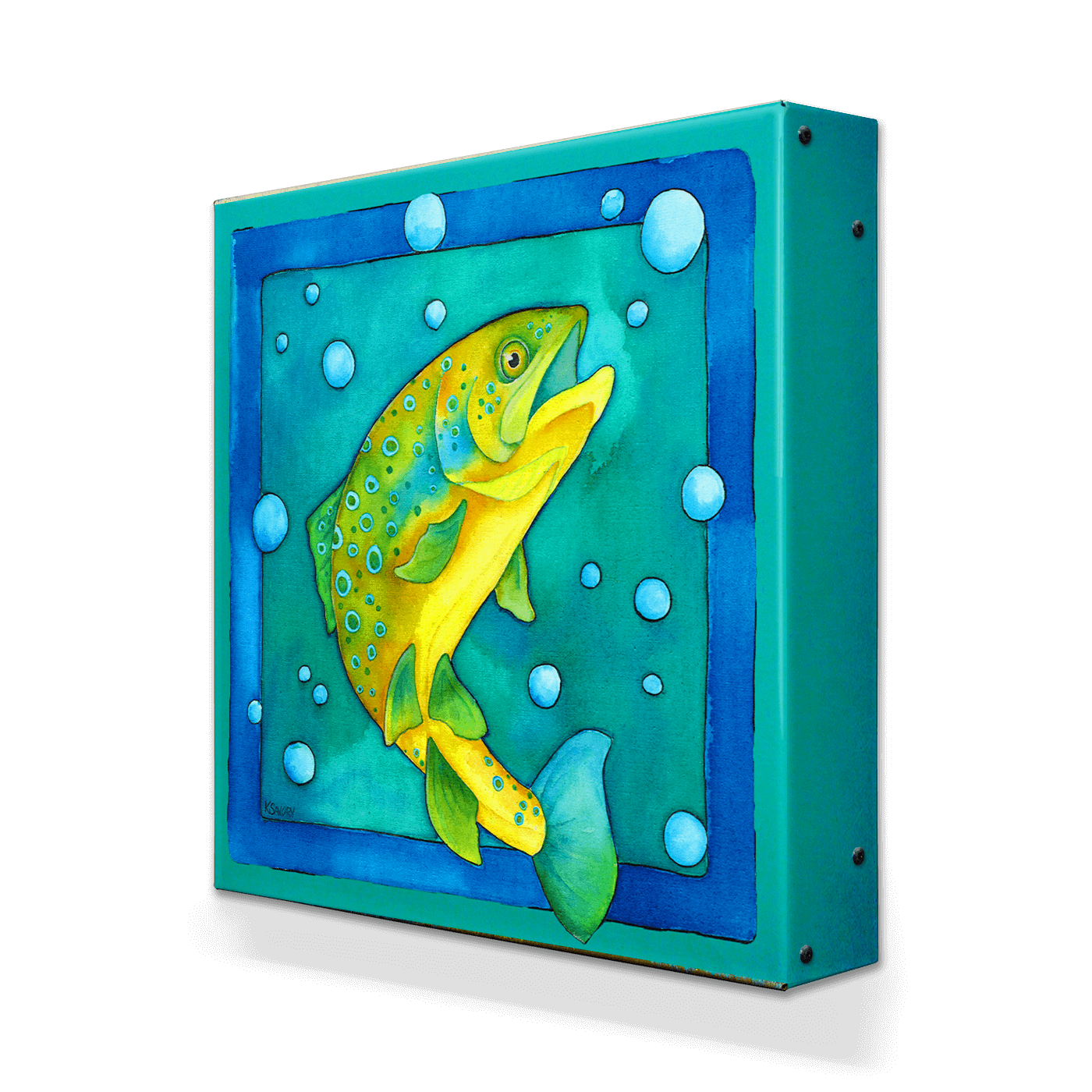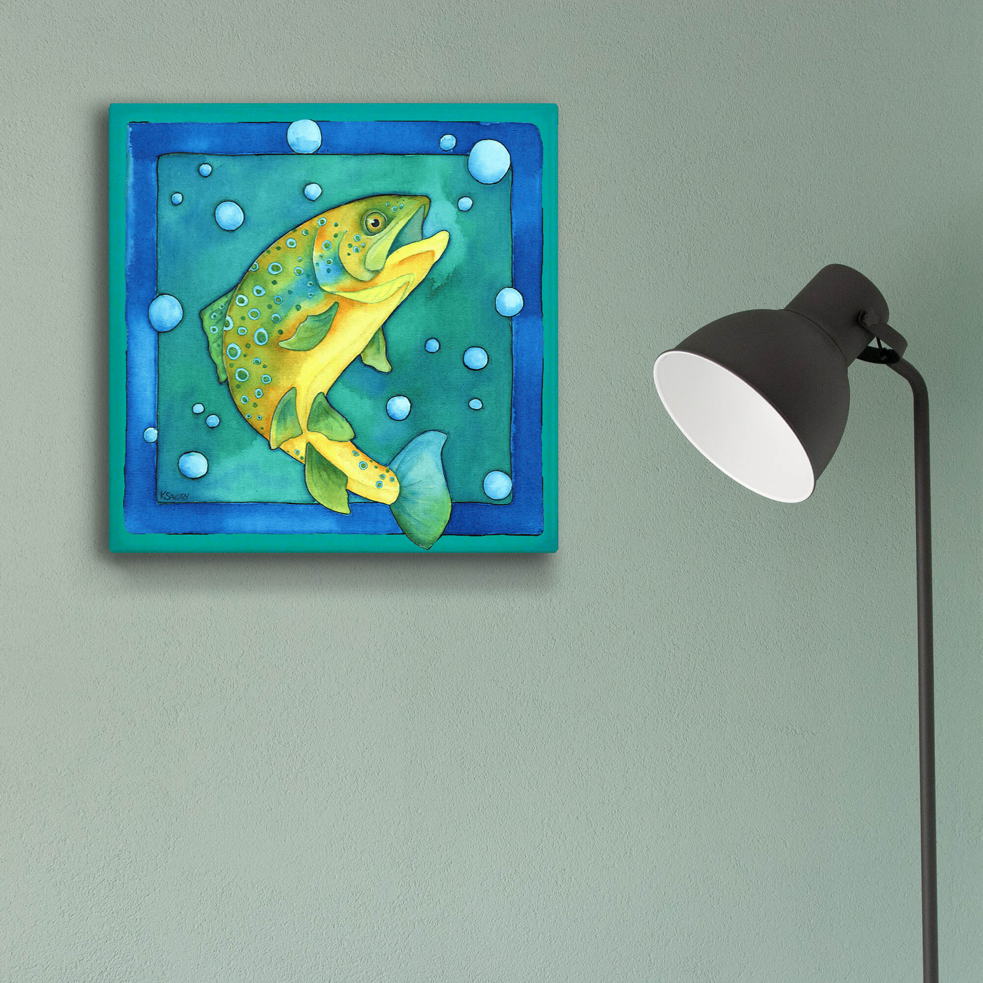 Dive into vibrant color with this stunning artwork of a green and golden fish swimming amidst playful bubbles. Set against rich blue and green hues, this piece captures the beauty and motion of underwater life. Perfect for adding a splash of energy and nature-inspired charm to any space, it’s an ideal choice for fishing enthusiasts and art lovers alike.