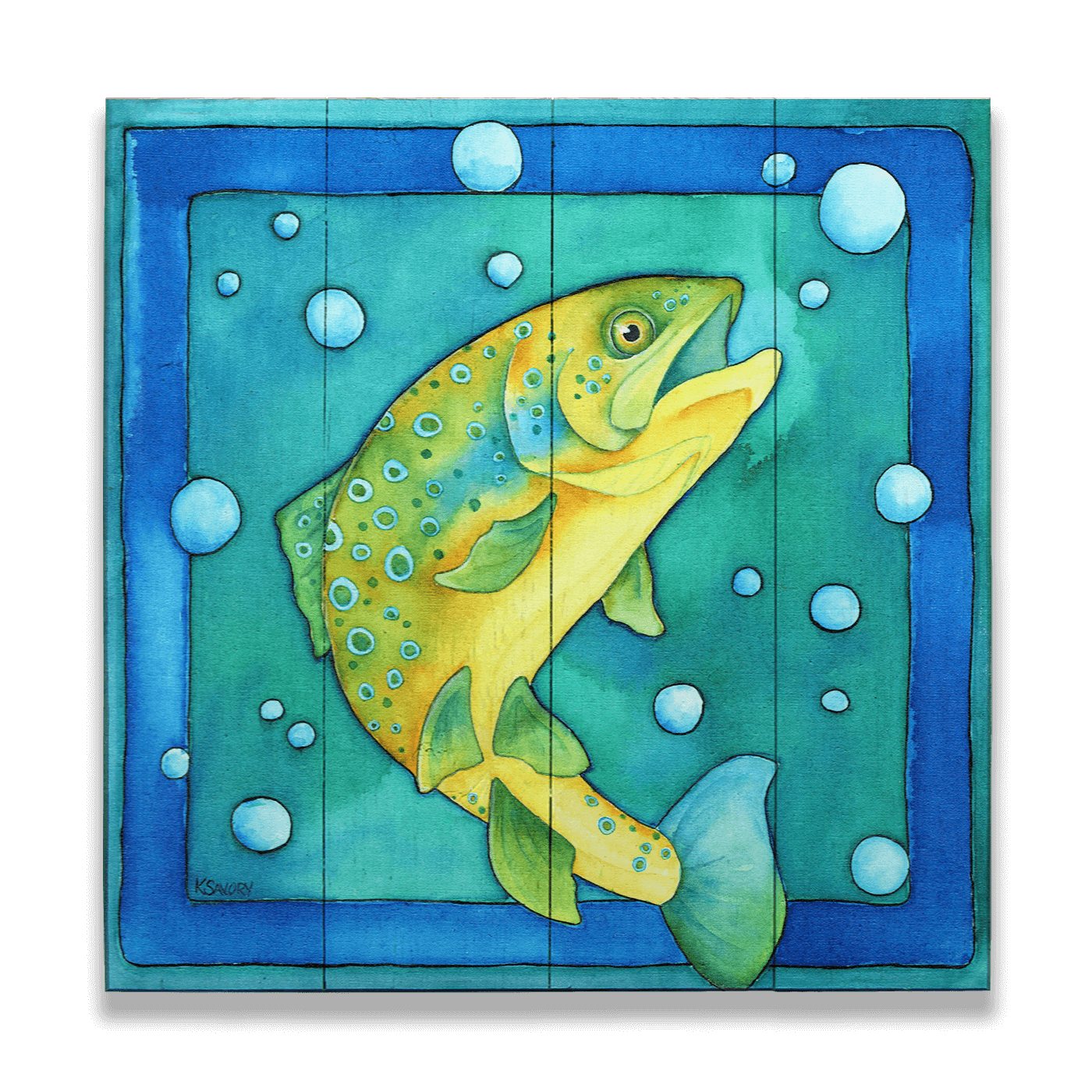 Dive into vibrant color with this stunning artwork of a green and golden fish swimming amidst playful bubbles. Set against rich blue and green hues, this piece captures the beauty and motion of underwater life. Perfect for adding a splash of energy and nature-inspired charm to any space, it’s an ideal choice for fishing enthusiasts and art lovers alike.