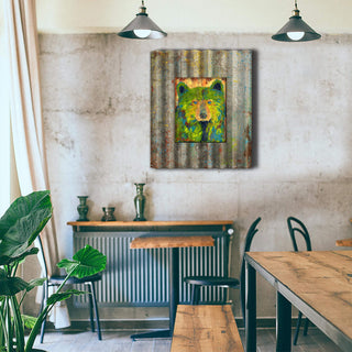 Embrace the wild with 'Fern,' a mesmerizing portrayal of a bear whose vibrant fur blooms with the lush colors of the forest. This captivating artwork is a vivid mosaic of greens, blues, and earth tones, layered with dynamic, expressive brushstrokes that evoke the dense foliage of ferns. The bear's intense blue eyes draw you into a world of natural mystery and beauty, making it a striking addition to any art collection or home decor.