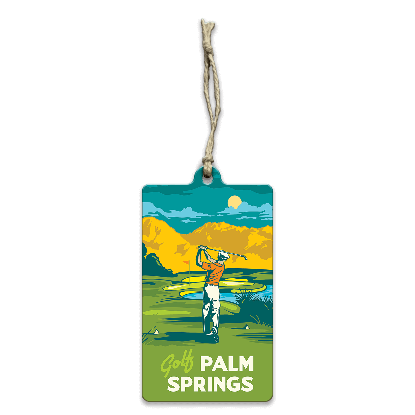 Bring the golden age of golf to your wall with this vintage-inspired Palm Springs artwork. Featuring a golfer mid-swing beneath sunlit desert mountains, this piece captures the timeless allure of California’s legendary fairways. With bold retro colors and clean mid-century design, it evokes the glamour and leisure of classic resort life. Perfect as Palm Springs wall decor, vintage golf art, or a unique gift for golfers, this vibrant print celebrates style, sport, and sunshine in one unforgettable scene.