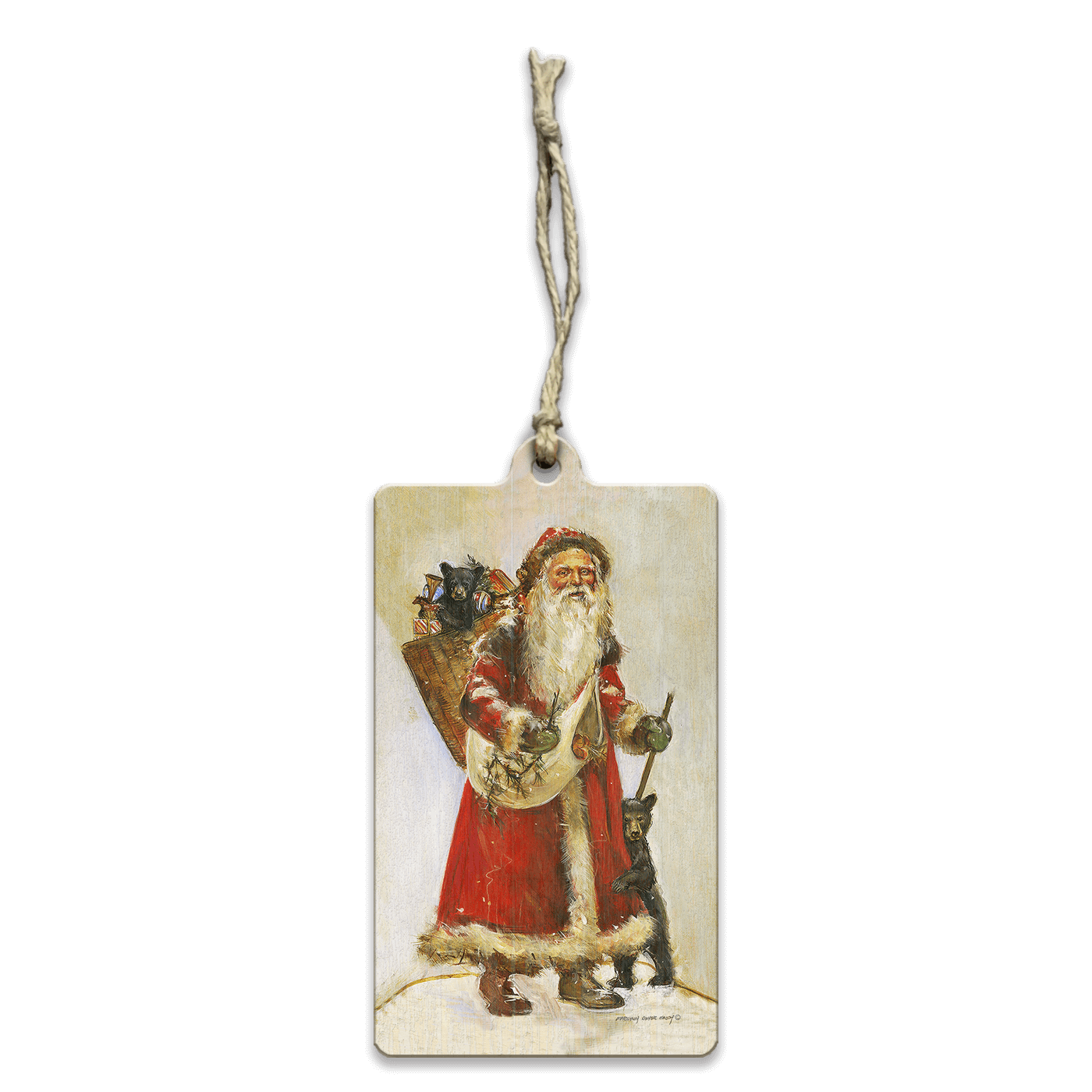 Embrace the festive spirit with our rustic and heartwarming artwork that features a classic Santa Claus as the embodiment of Christmas cheer. Clad in his iconic red suit and carrying a sack brimming with gifts, Santa stands as a timeless symbol of the season's generosity and joy. Accompanying him are two adorable bear cubs, peeking curiously and adding an unexpected and charming twist to the traditional holiday scene. Personalize the sign with your family name or greeting of your choice.