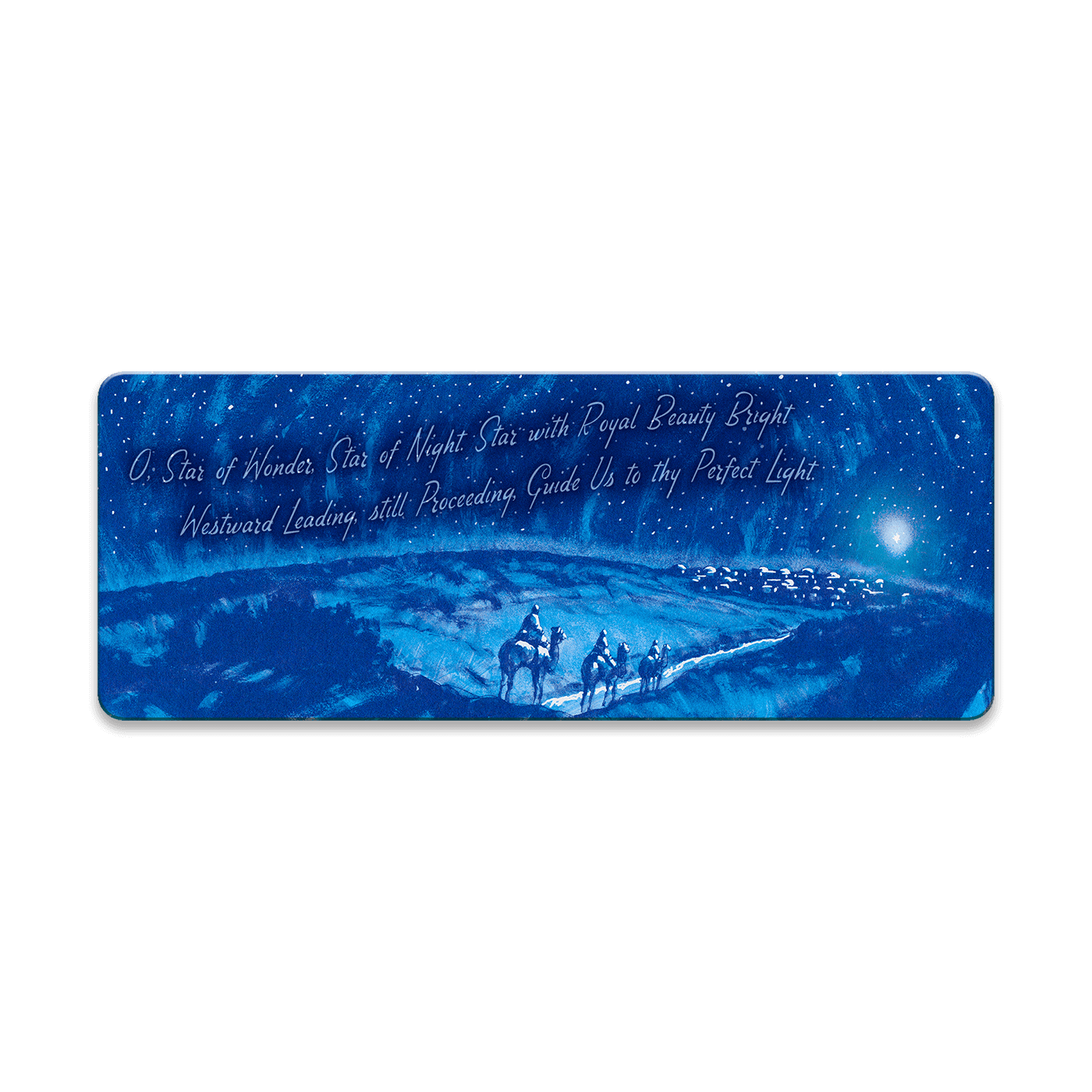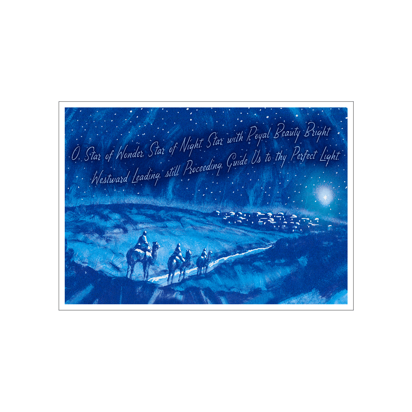 This stunning artwork titled Star of Wonder captures the peaceful journey of the three wise men under a brilliant starry sky. With its vibrant, deep blue hues and poetic verse, "O Star of Wonder, Star of Night," this piece beautifully celebrates the iconic nativity scene and the spiritual meaning of Christmas. Perfect for holiday décor, it evokes a sense of wonder, hope, and divine guidance, making it an ideal addition to any home or religious setting. This inspirational piece also serves as a thoughtful gift for those who appreciate the beauty of Christmas traditions.