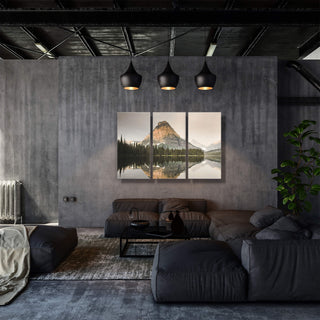 Capture the serene and untouched beauty of Two Medicine in Glacier National Park with this captivating triptych wall art. Featuring the iconic Sinopah Mountain mirrored perfectly in the calm, glassy waters of Two Medicine Lake. The gentle hues of dusk bathe the landscape in a soft light, enhancing the tranquil and majestic atmosphere of this hidden gem. Perfect for nature lovers and those who appreciate the quiet grandeur of natural landscapes, this artwork brings the peaceful solitude of Glacier National Park's lesser-known region into your living space.