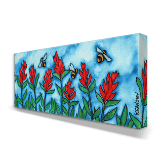 Inspire joy and connection with nature with this delightful artwork featuring vibrant red wildflowers and busy bees dancing under a blue sky. The cheerful composition captures the harmony of nature, with lush green leaves and the energy of pollinators at work. Perfect for brightening any room, this piece celebrates the beauty and vitality of our natural world.