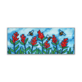 Inspire joy and connection with nature with this delightful artwork featuring vibrant red wildflowers and busy bees dancing under a blue sky. The cheerful composition captures the harmony of nature, with lush green leaves and the energy of pollinators at work. Perfect for brightening any room, this piece celebrates the beauty and vitality of our natural world.