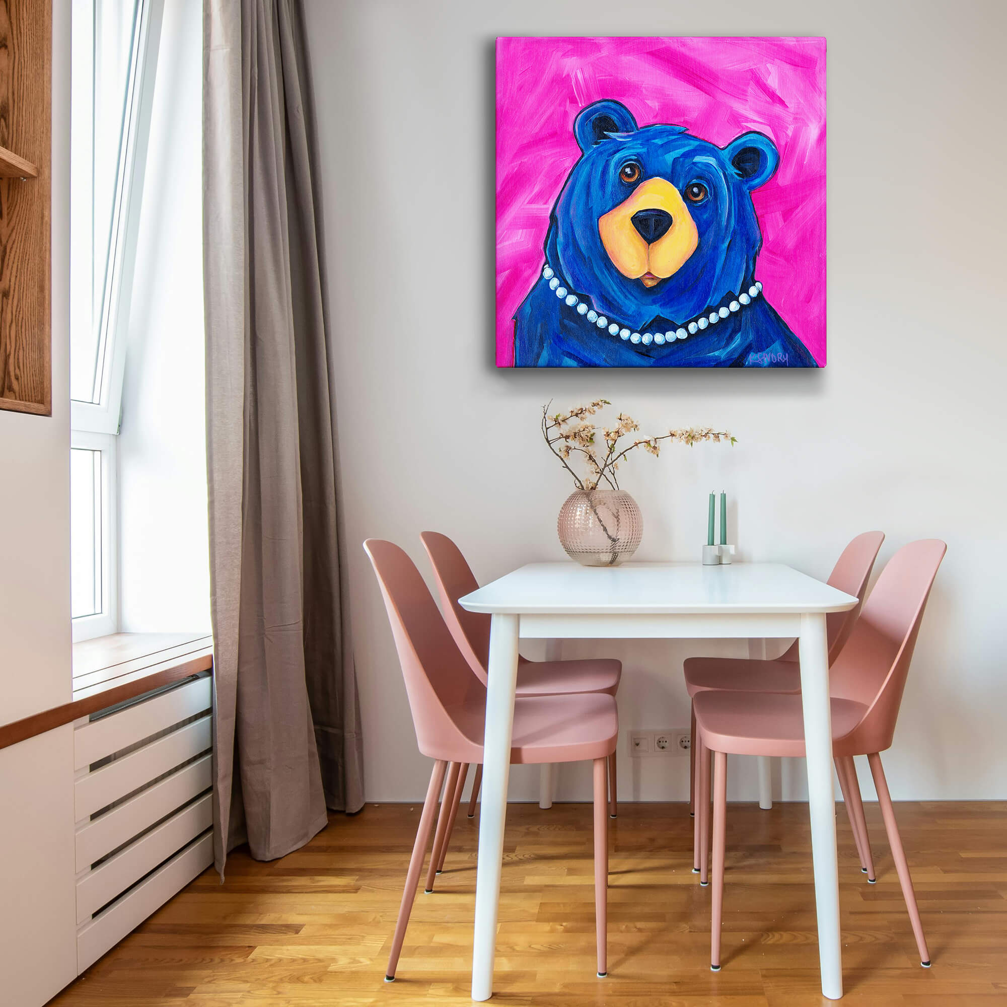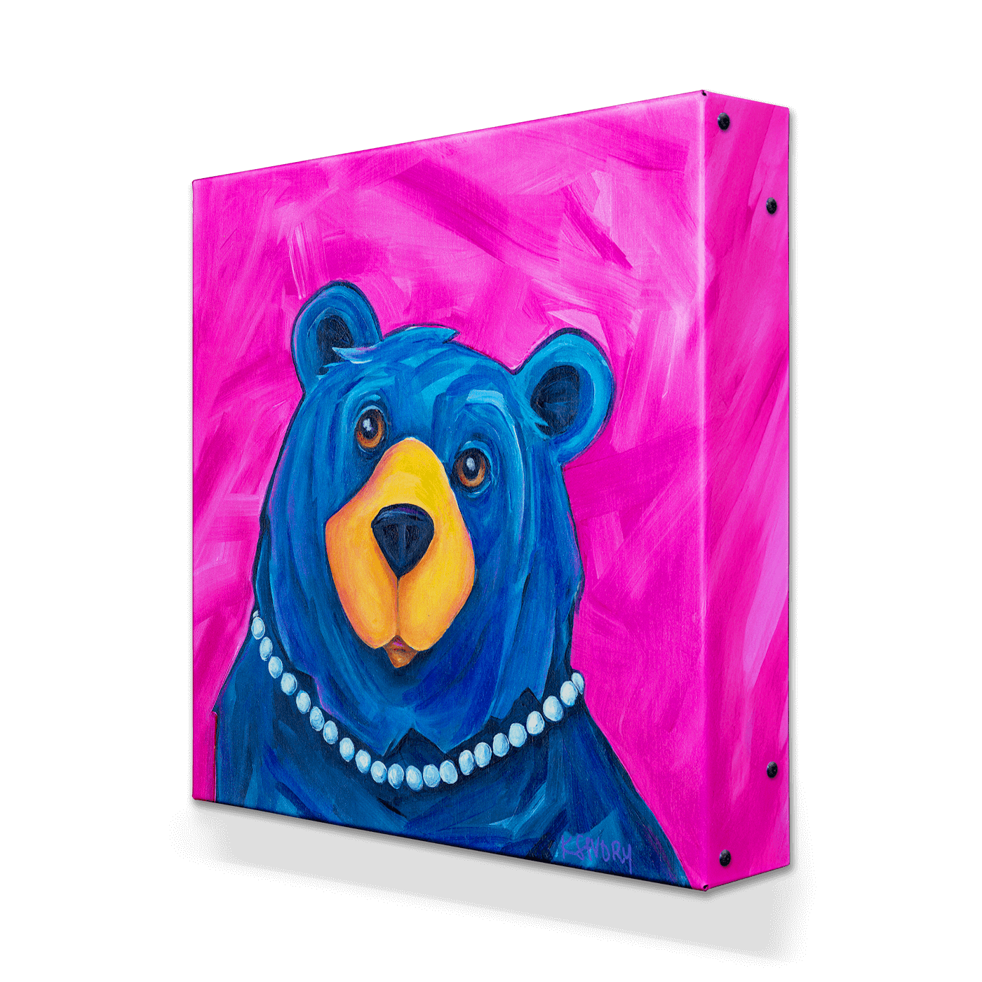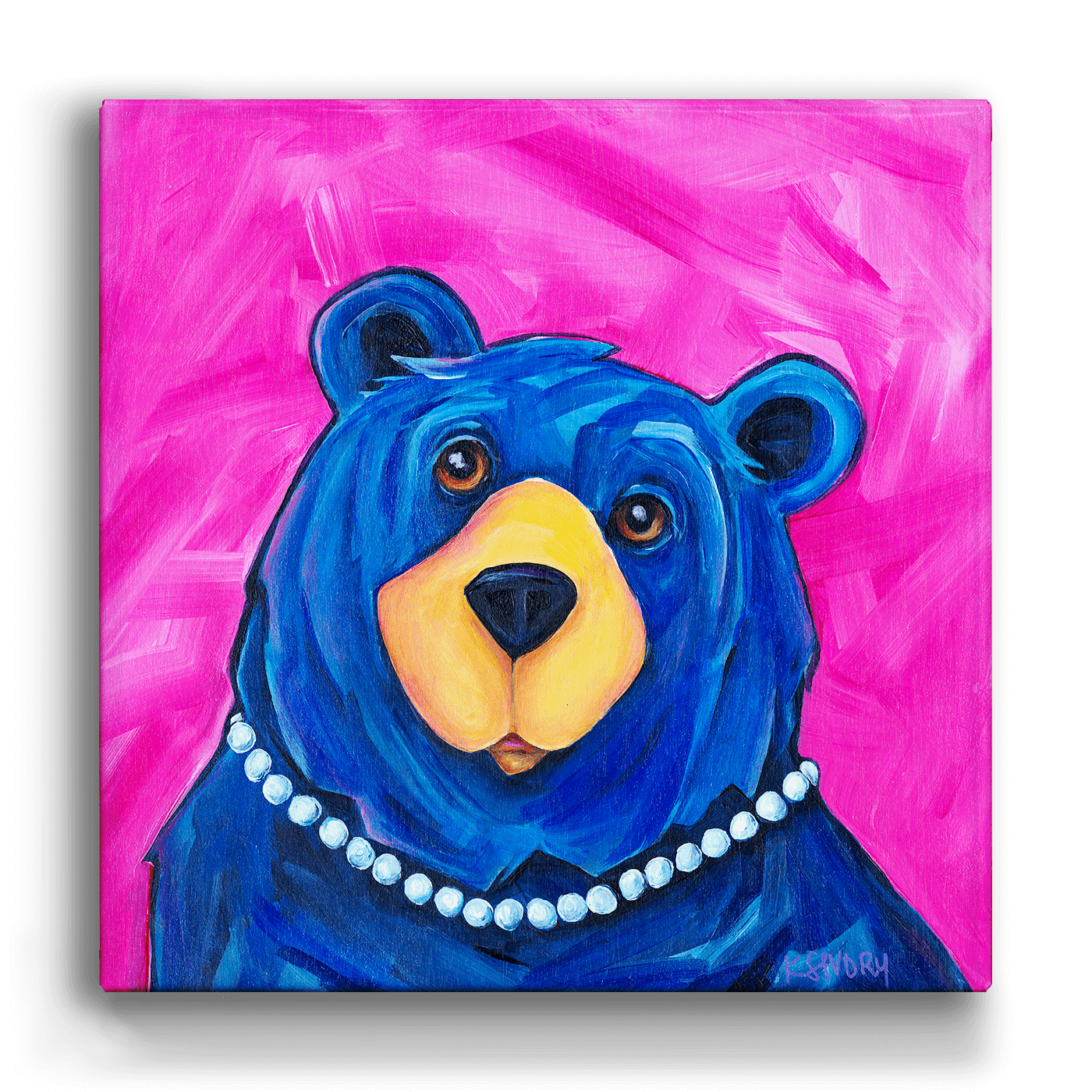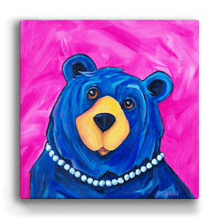 Make a bold statement with this vibrant and cheerful artwork featuring a stylish blue bear adorned with a pearl necklace. Set against a striking hot pink background, this piece is full of personality and charm. The bear's expressive eyes and unique fashion choice add a playful, sophisticated twist, perfect for anyone who loves fun and colorful decor.