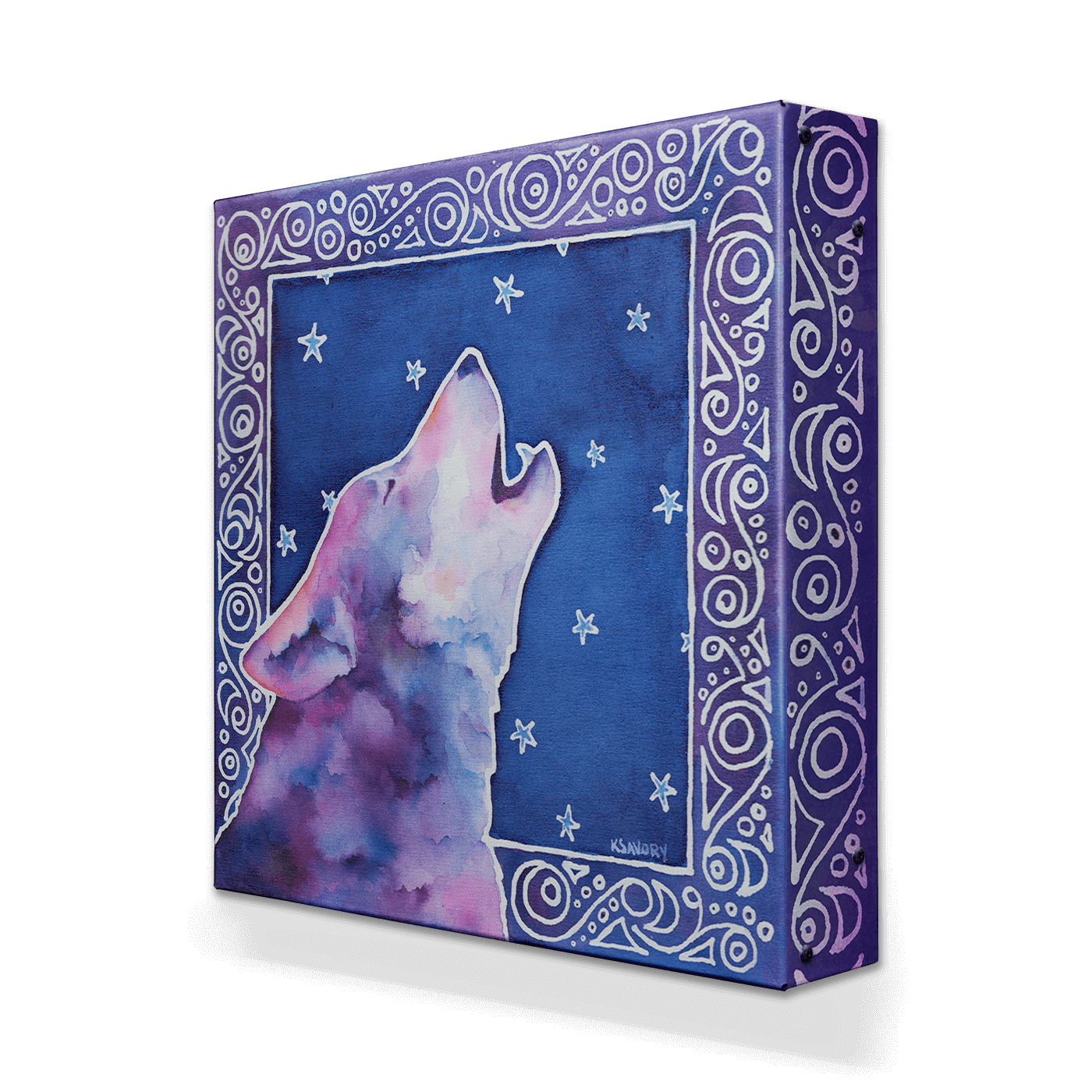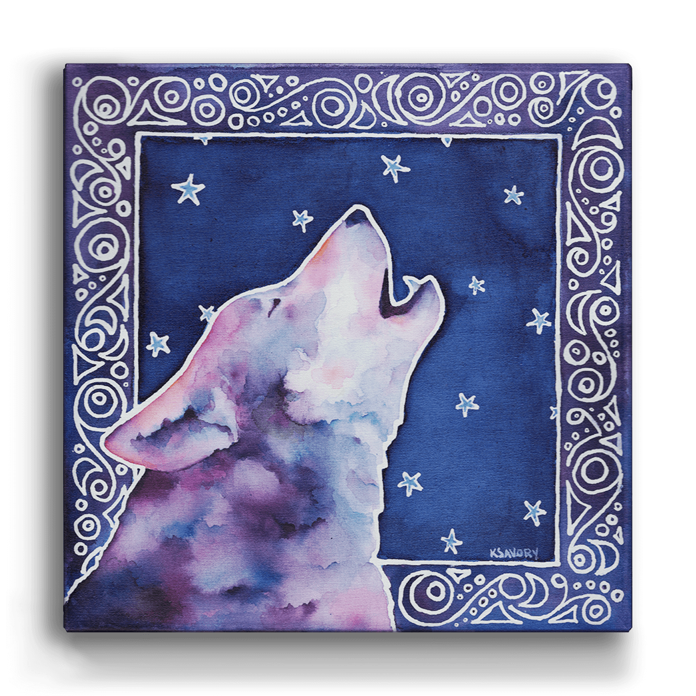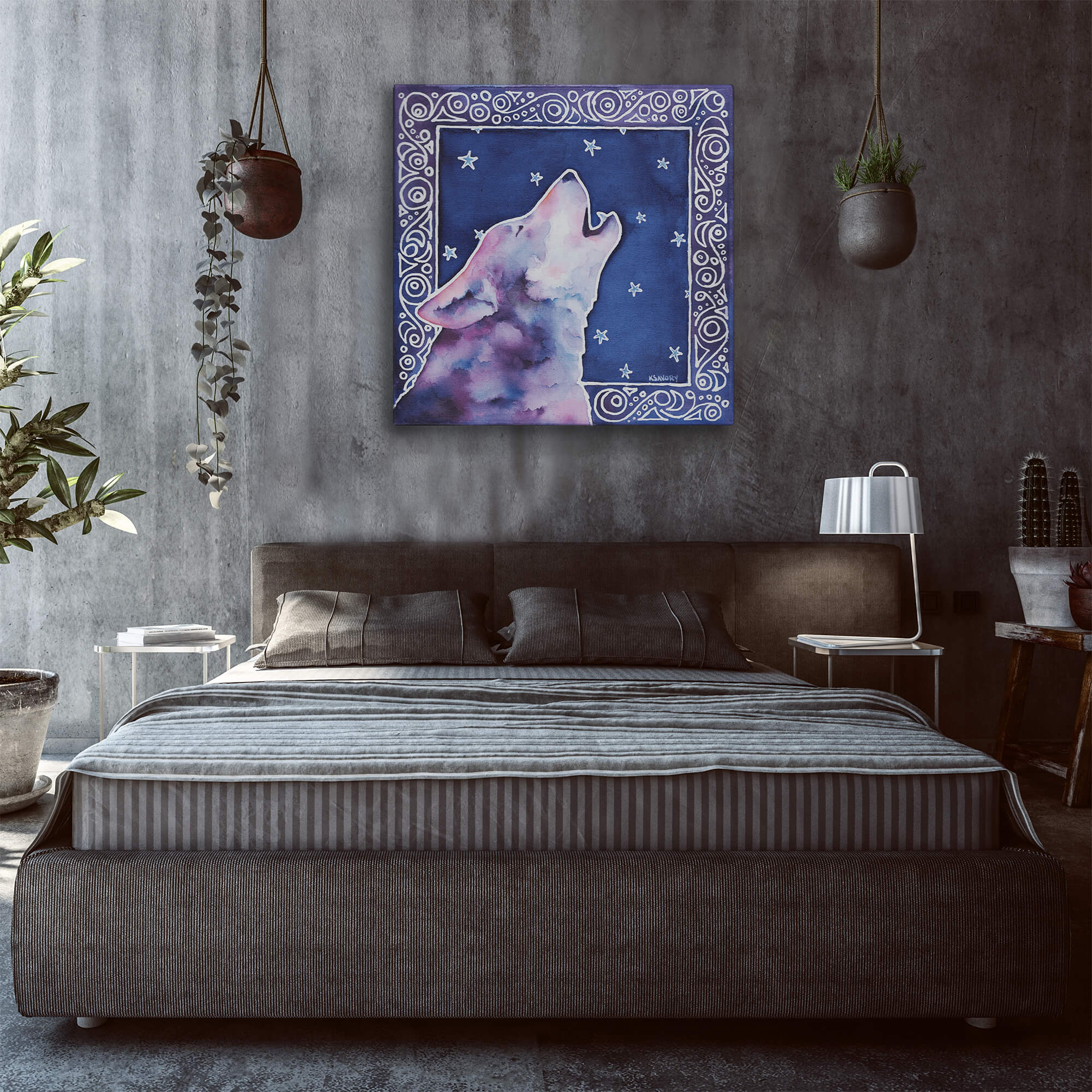 Embrace the magic of the night with this stunning artwork of a howling wolf under a starry sky. With a rich, deep blue background adorned with swirling white patterns, this piece captures the mystique and freedom of the wild. Perfect for wilderness enthusiasts and those seeking a touch of wonder, this artwork brings a serene, celestial vibe to any space. Ideal for creating a captivating focal point that speaks to the soul.