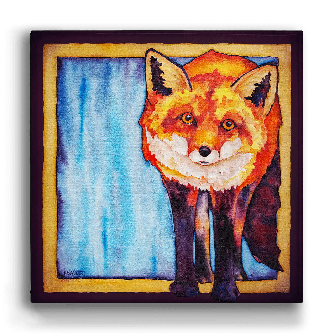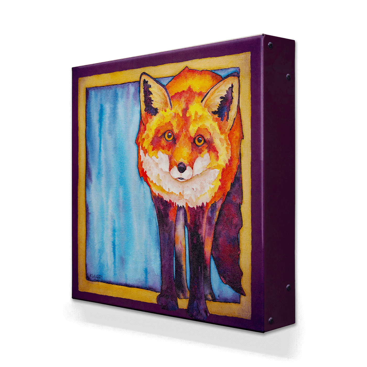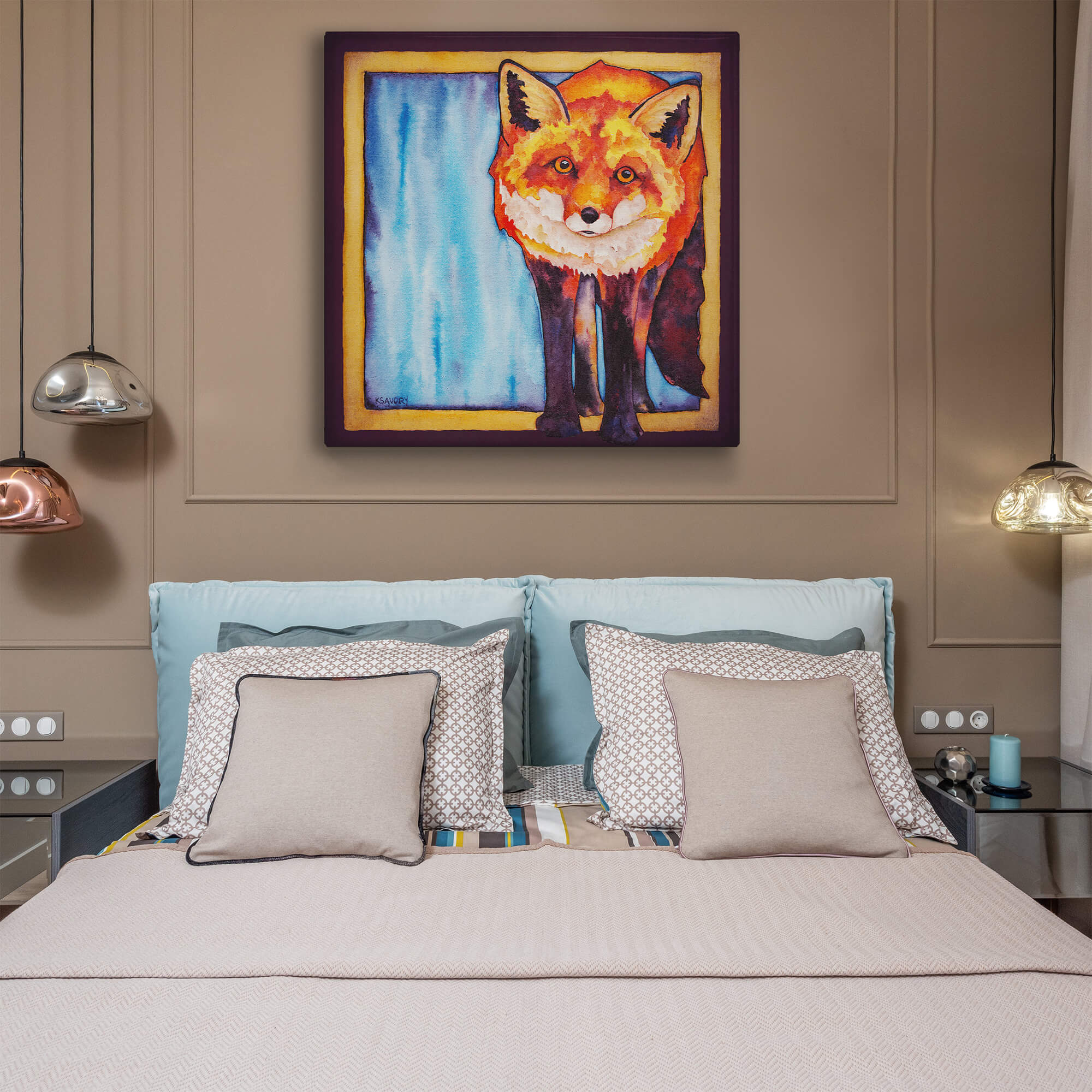 Capture the beauty and mystery of the wild with this stunning fox artwork. The vibrant orange and red tones of the fox’s fur contrast beautifully with the cool blue background, creating a striking and balanced composition. Framed within a bold border, the fox's gaze is both curious and captivating, inviting viewers into its world. Perfect for animal lovers and nature enthusiasts, this piece brings a touch of wilderness and warmth to any space. Enhance your decor with this exquisite representation of one of nature’s most intriguing creatures.