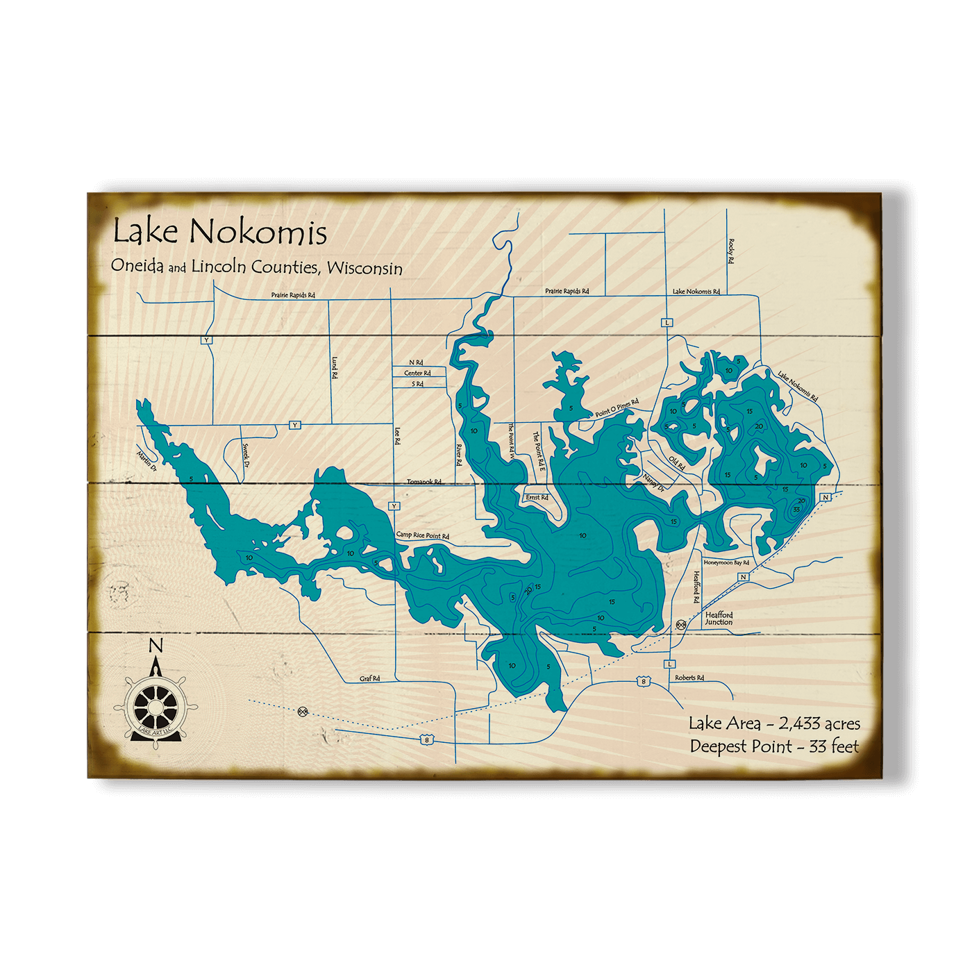 Lake Nokomis, Wisconsin - Wood & Metal Wall Art