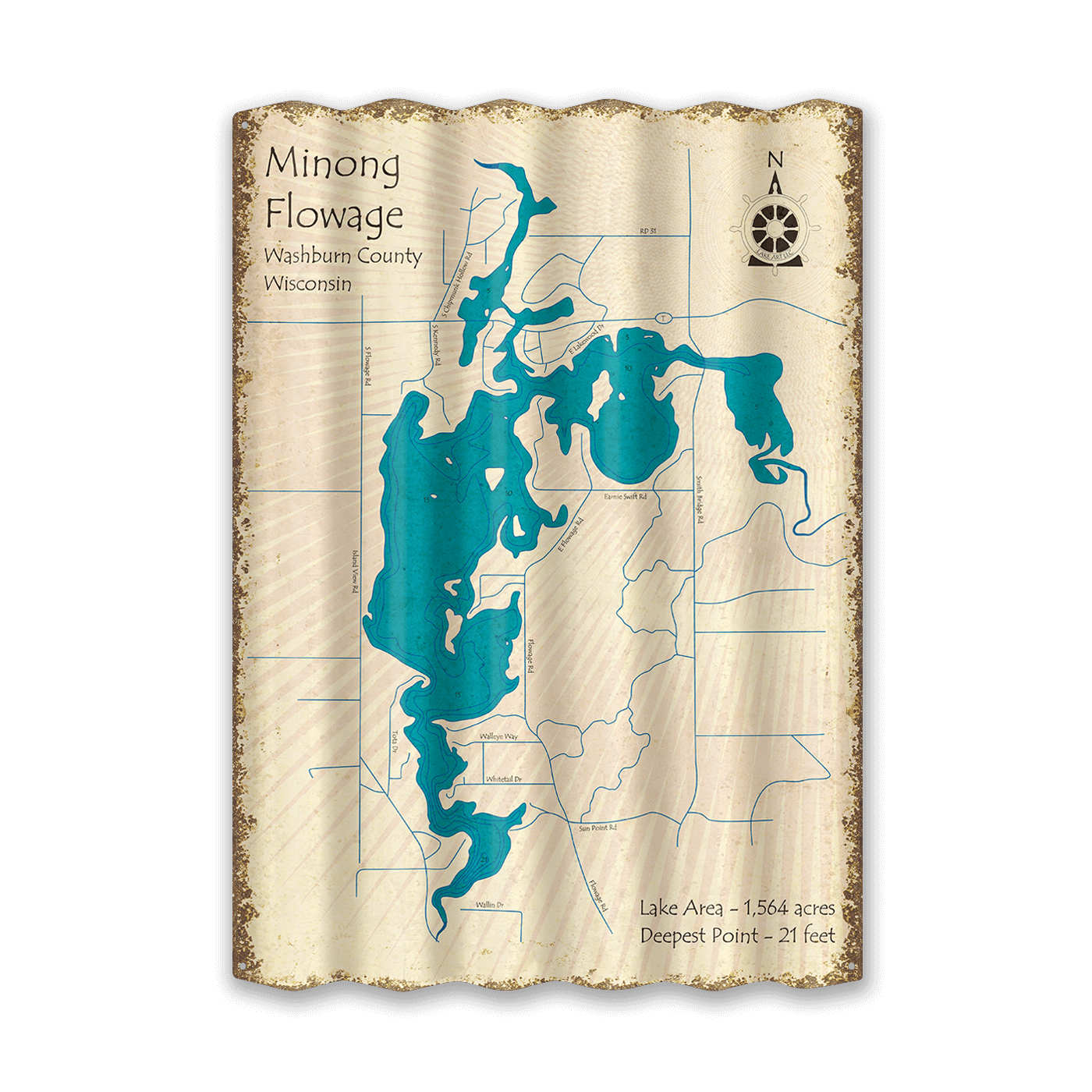 Minong Flowage, Wisconsin - Corrugated Metal Wall Art