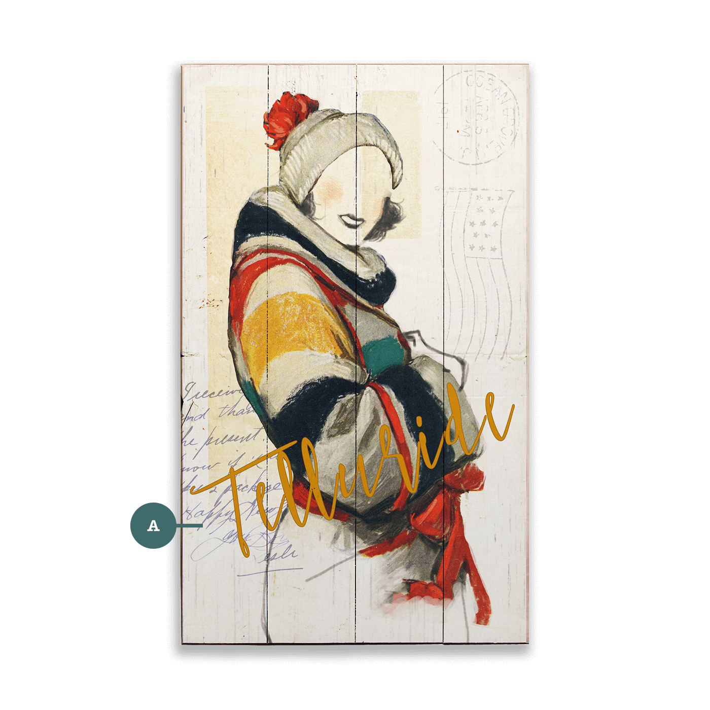Winter Fashion Postcard: Color Block Coat - Wood & Metal Wall Art