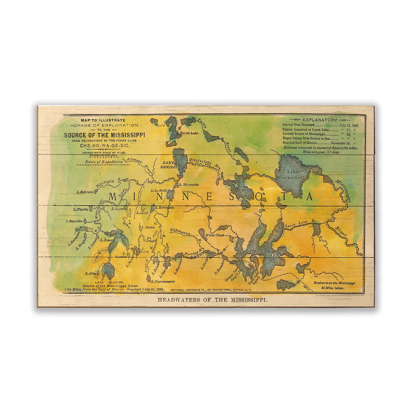 This vintage map of the headwaters of the Mississippi River is a captivating glimpse into the origins and natural beauty of this iconic waterway. Carefully crafted with intricate details and a touch of nostalgia, this map reveals the intricate network of lakes, streams, and wetlands that converge to form the mighty Mississippi.