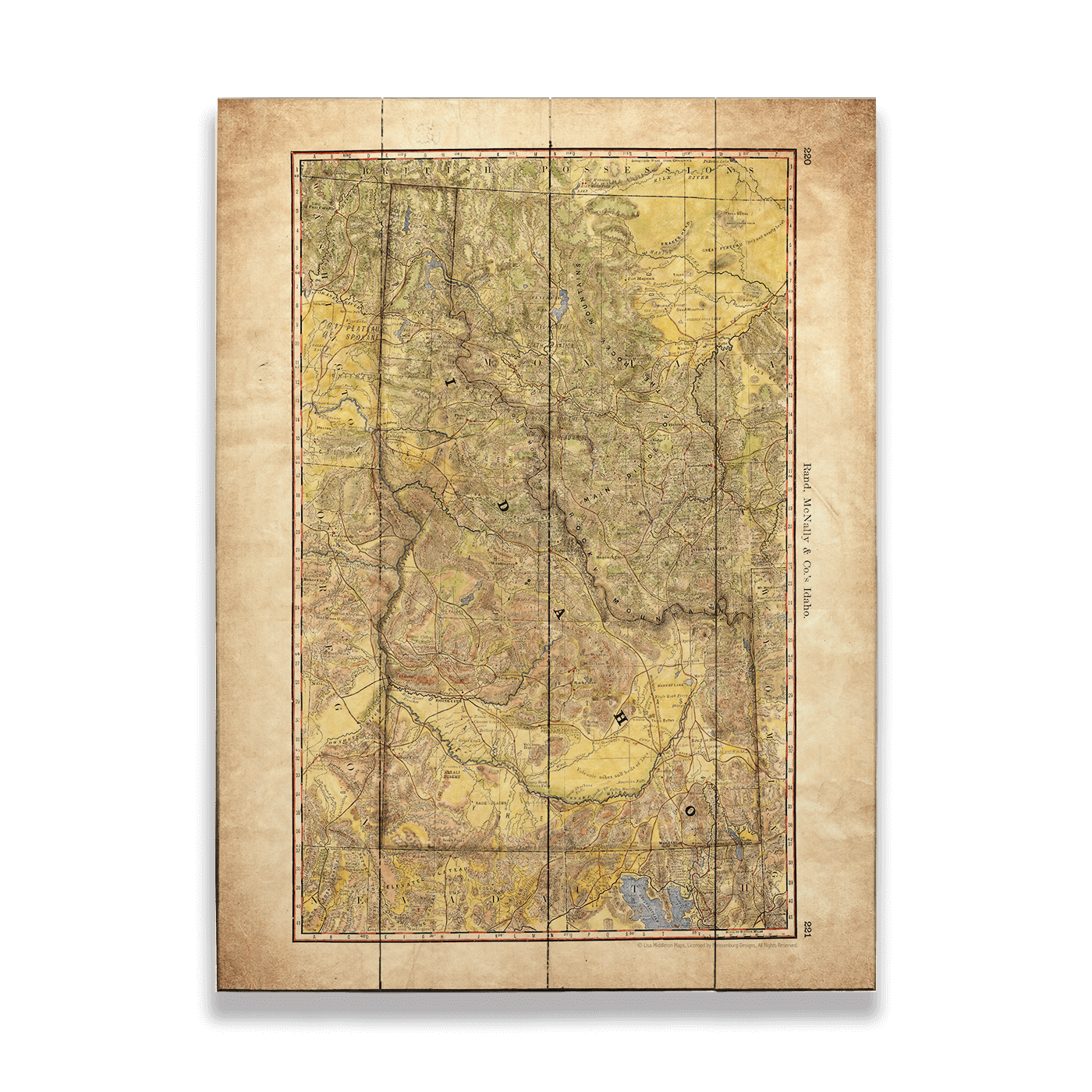 Follow in the footsteps of the cowboys of old with this historic vintage map of Idaho, a must-have for history buffs and western enthusiasts! Idaho, known for its rugged beauty, is home to the famous Oregon Trail and California Trail. These trails played a crucial role in the westward expansion of the United States, and our map brings these historical paths to life.