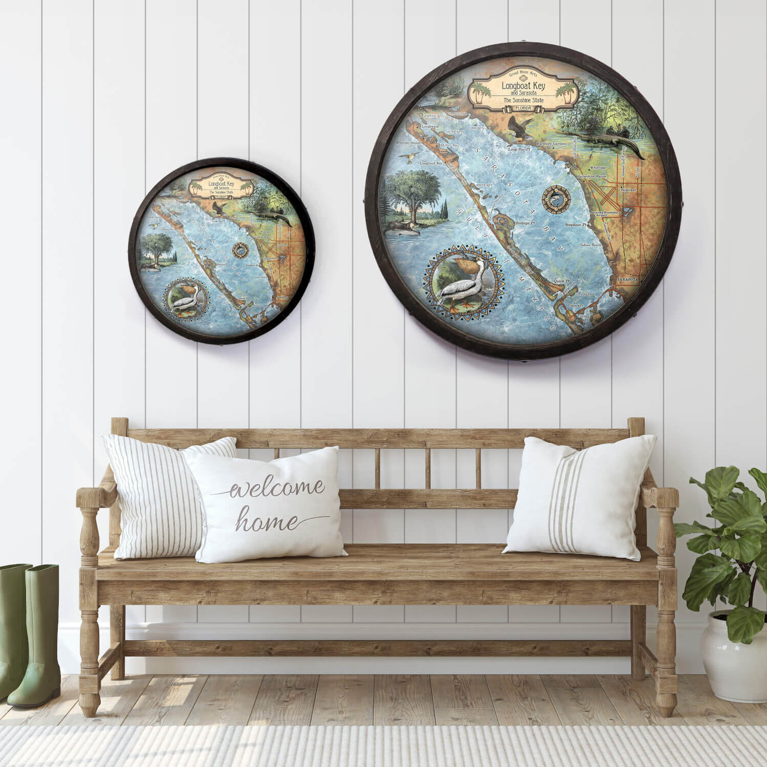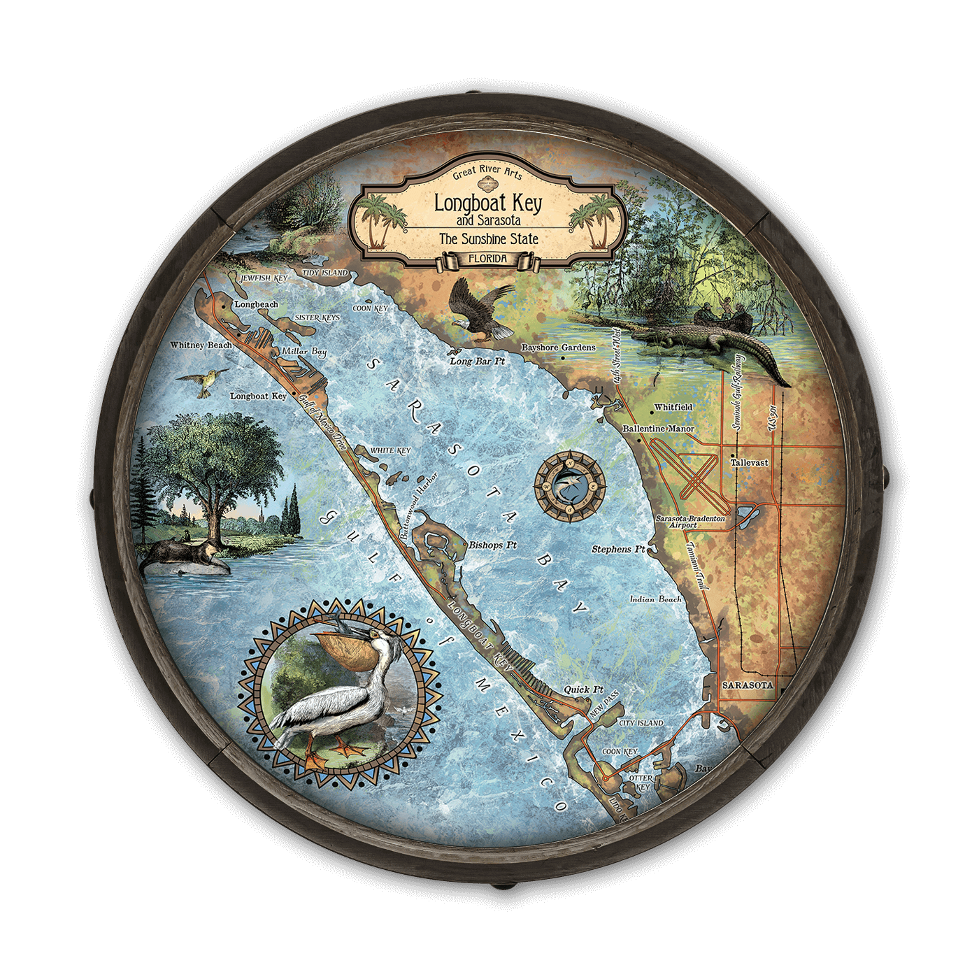 Longboat Key, Florida: Illustrated Map - Barrel End Wall Art