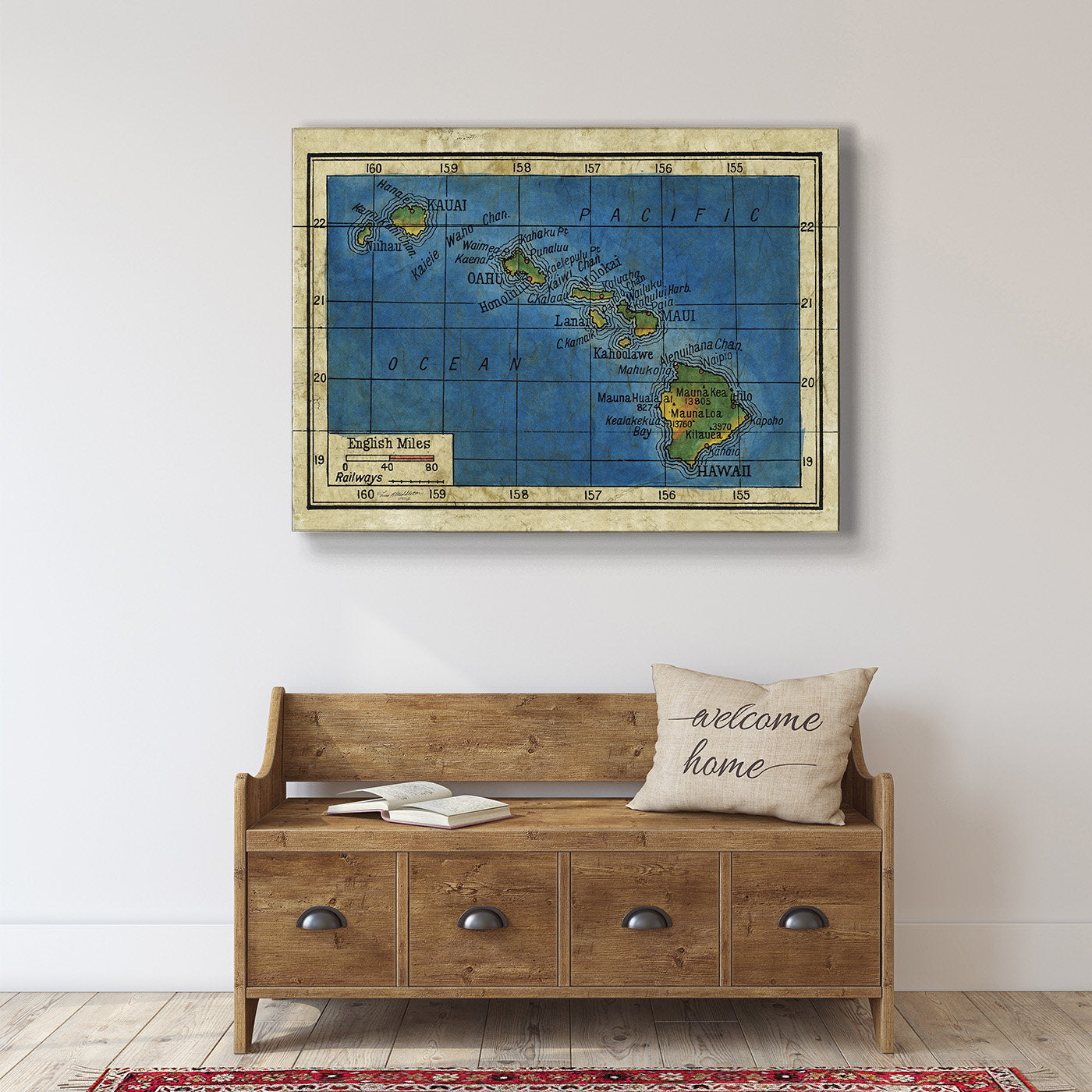 Dive into the deep blue with this captivating vintage map of the Hawaiian Islands. Highlighting the archipelago's major islands from Kauai to Hawaii, this map blends geographical detail with a timeless aesthetic. It's perfect for those fascinated by cartography, Pacific geography, or the storied history of Hawaii. Whether used as an educational tool or a decorative piece, this map invites viewers to explore the unique landscapes and rich culture of Hawaii, making it a valuable addition to any map enthusiast's collection or a striking piece for home decor.