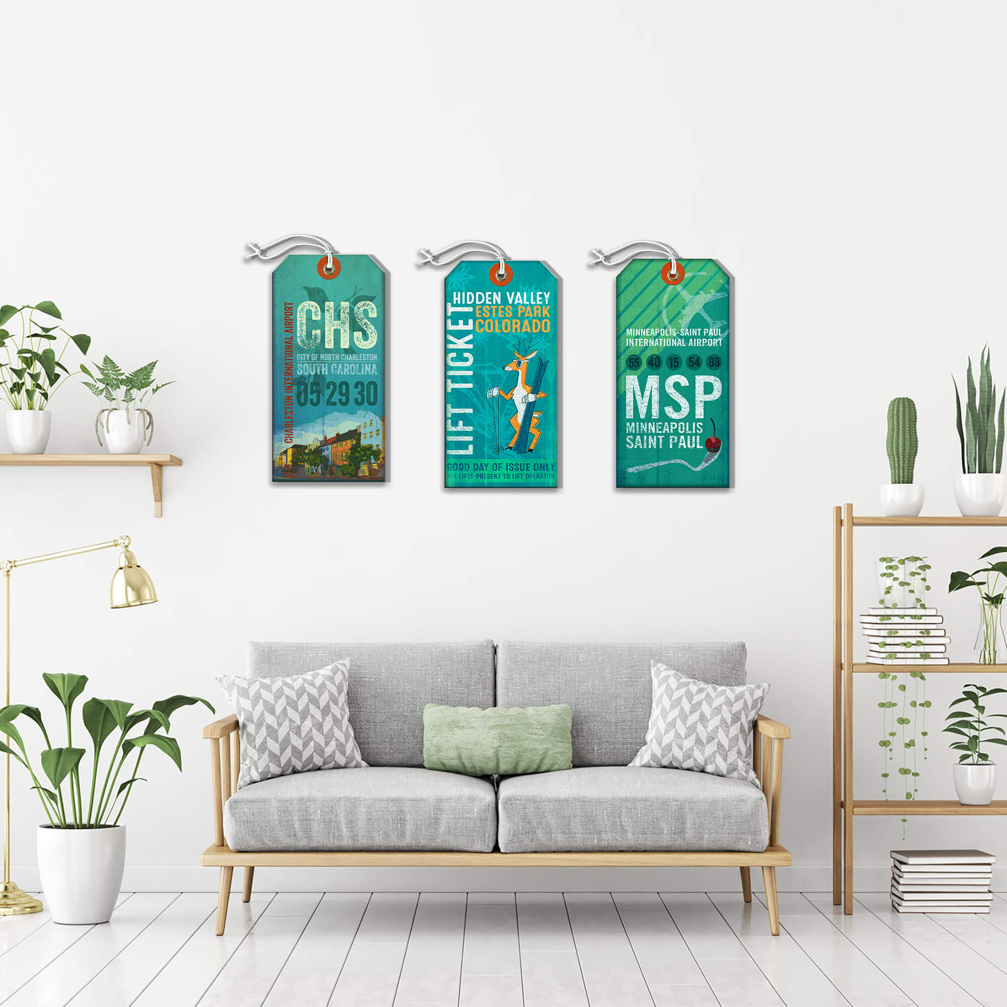 Our luggage tags form a collection that celebrates the romance of travel, each tag telling a story of different destinations and moments from travel's glamorous past. They offer a visual journey that's perfect for any space that craves a touch of vintage travel charm.