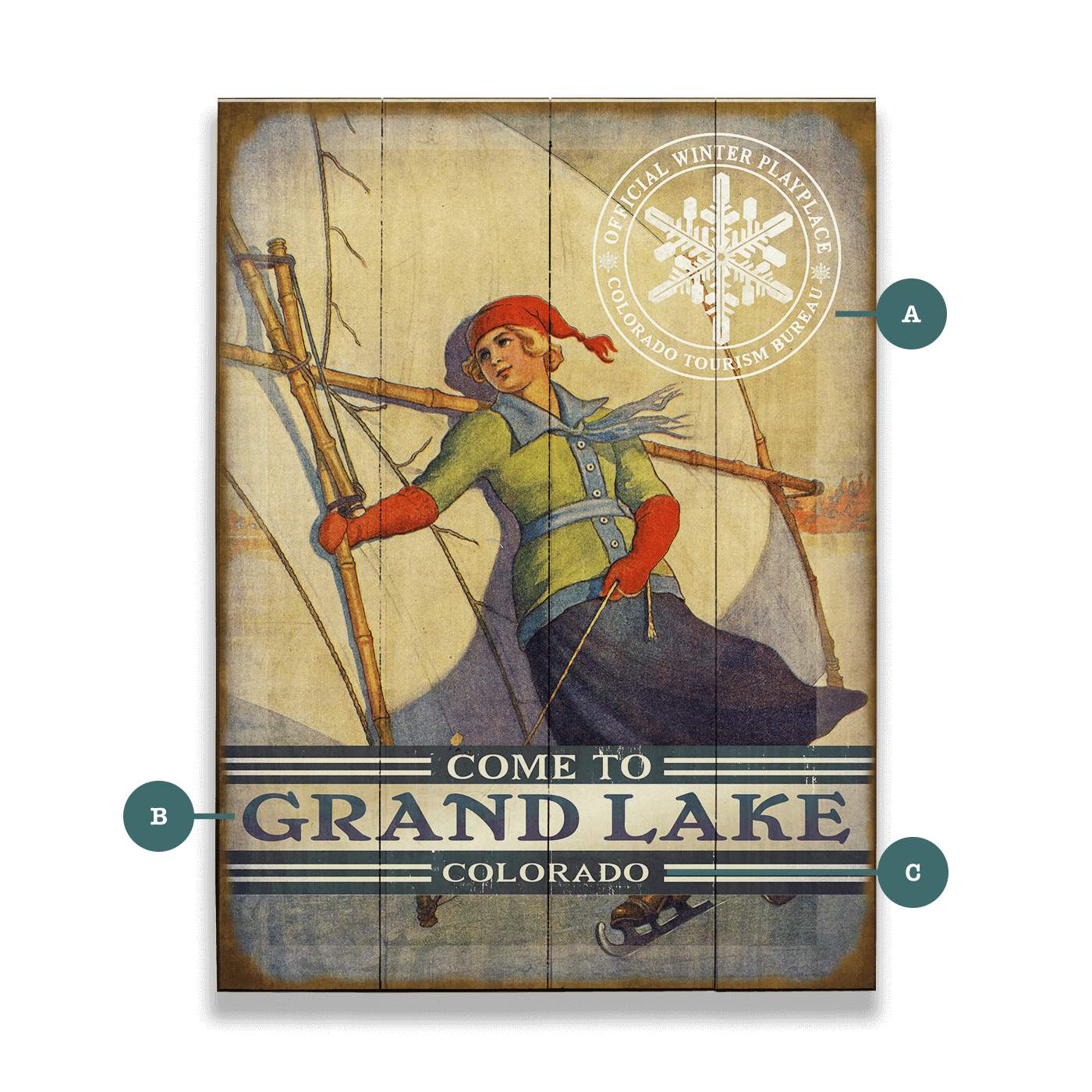 Catch the winter wind with this vintage-style skate sailing sign, where a stylish skater leans into the breeze beneath a crisp sail and frosty sky. Dressed in retro winter gear, she grips the wooden rigging of a handheld sail, capturing the thrill and balance of this rare winter pastime. Weathered edges and an official snowflake seal enhance the nostalgia, making it a striking addition to ski lodges, lake cabins, or any space that celebrates the adventurous spirit of snow-season sports.
